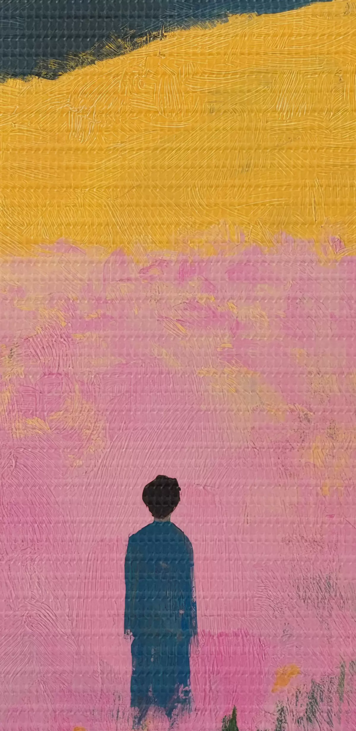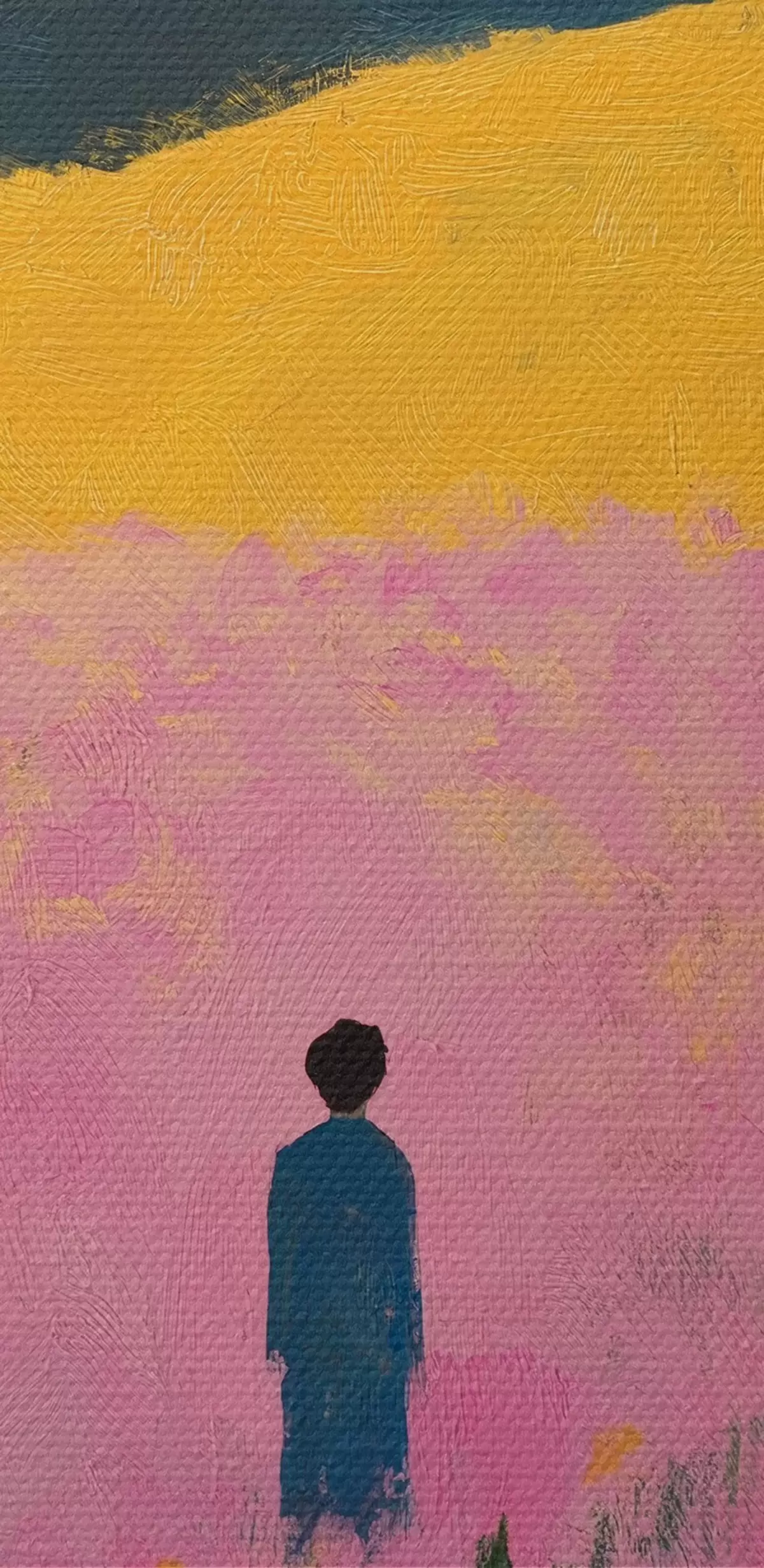 Obrázek Muž na poli s růžovými květy Nr r41164