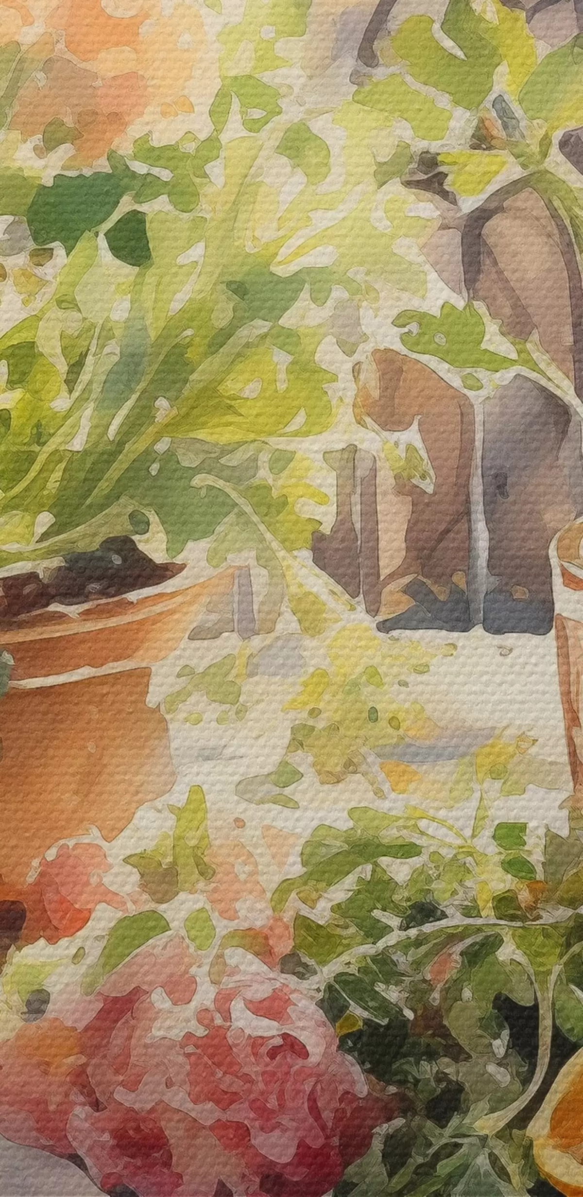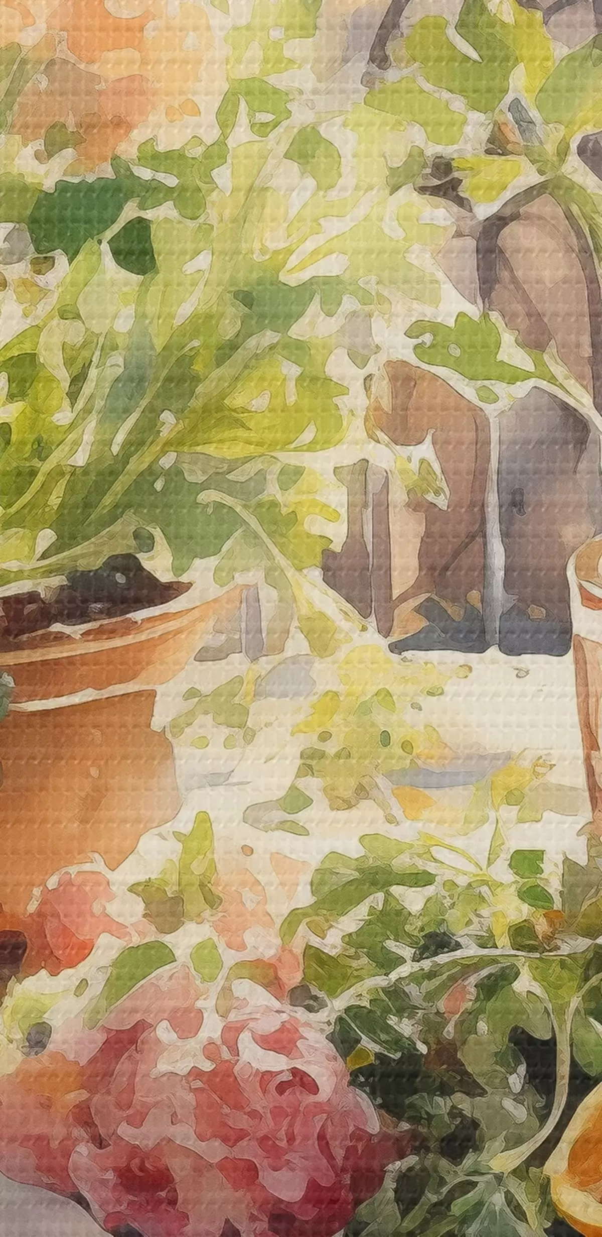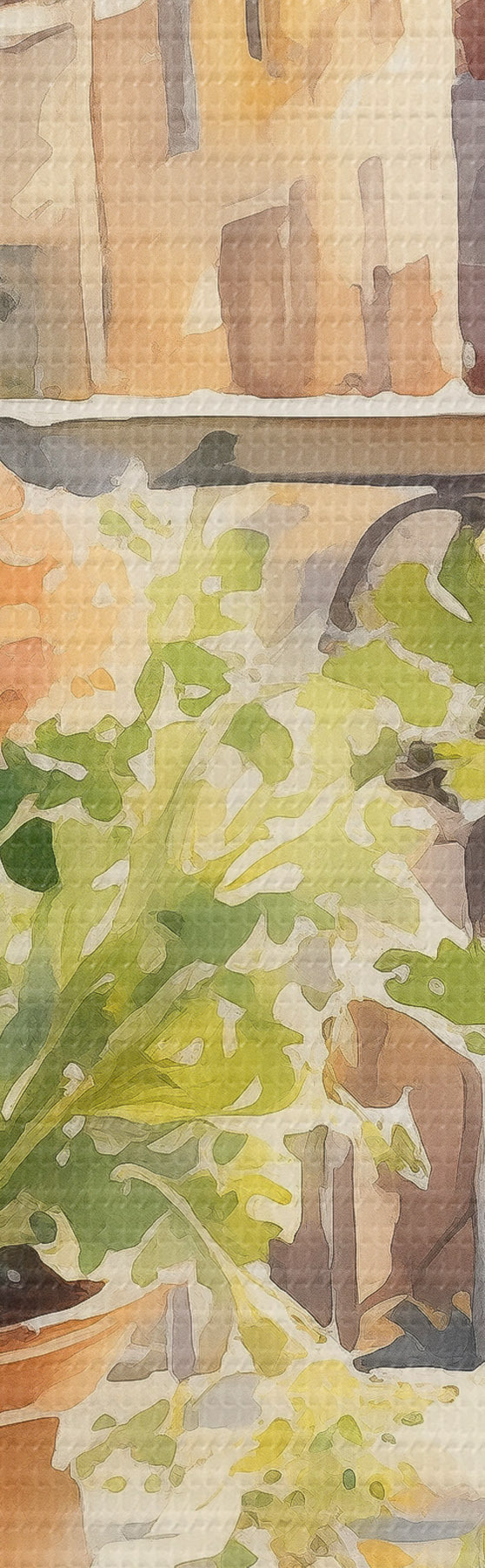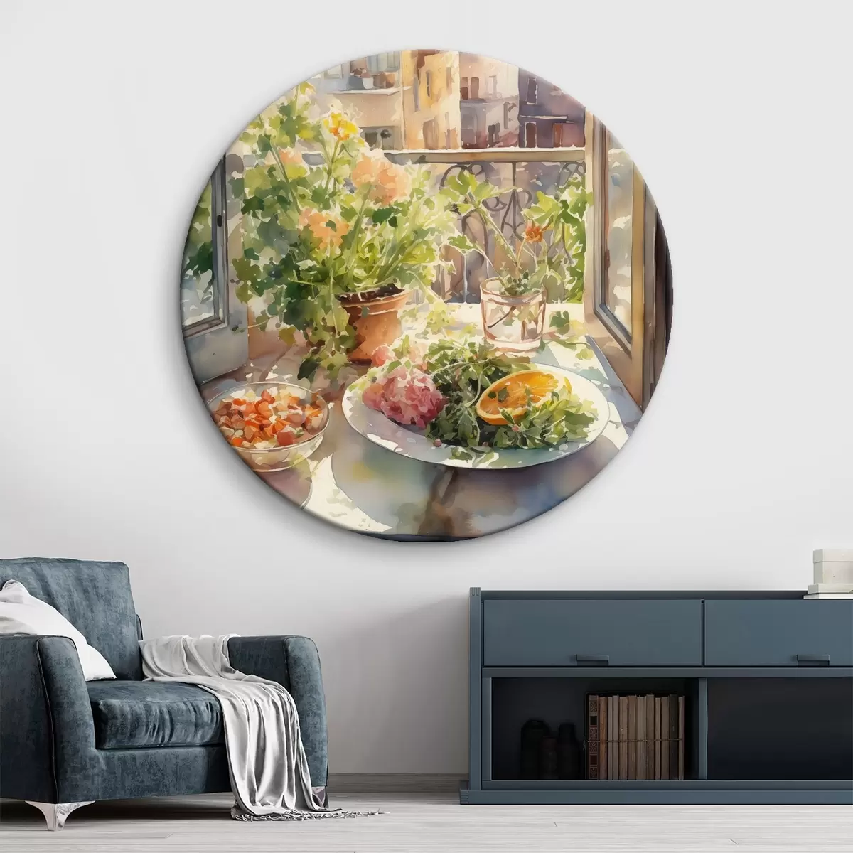 Obrázek Akvarelová večeře, pohled na město, květiny, příroda, zelený salát Nr r41166