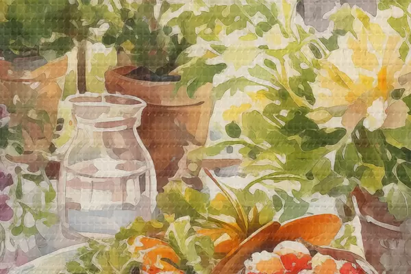 Obrázek Romantická večeře s výhledem na město, akvarel, květiny Nr r41168