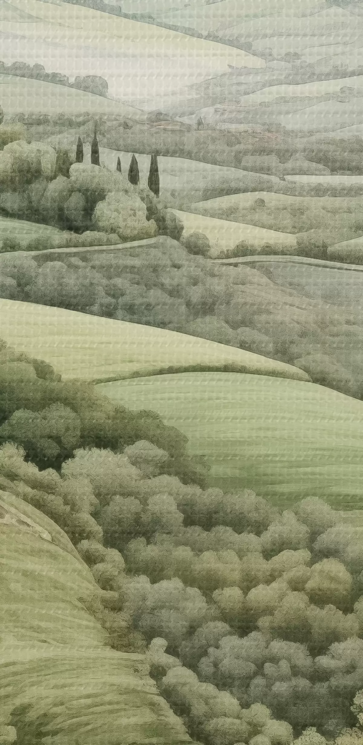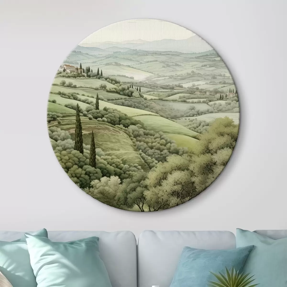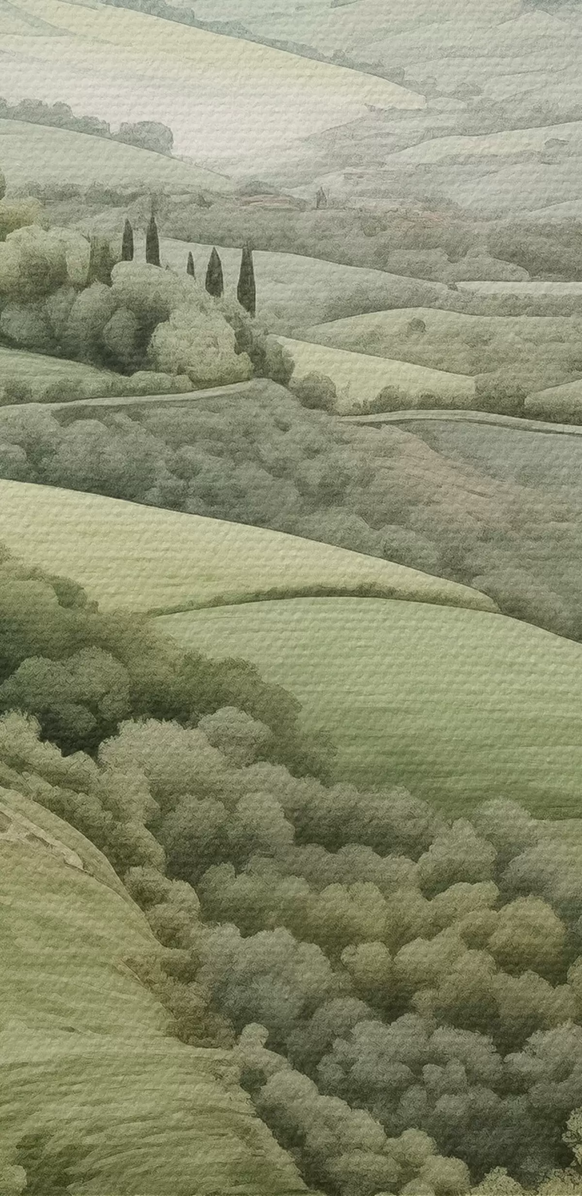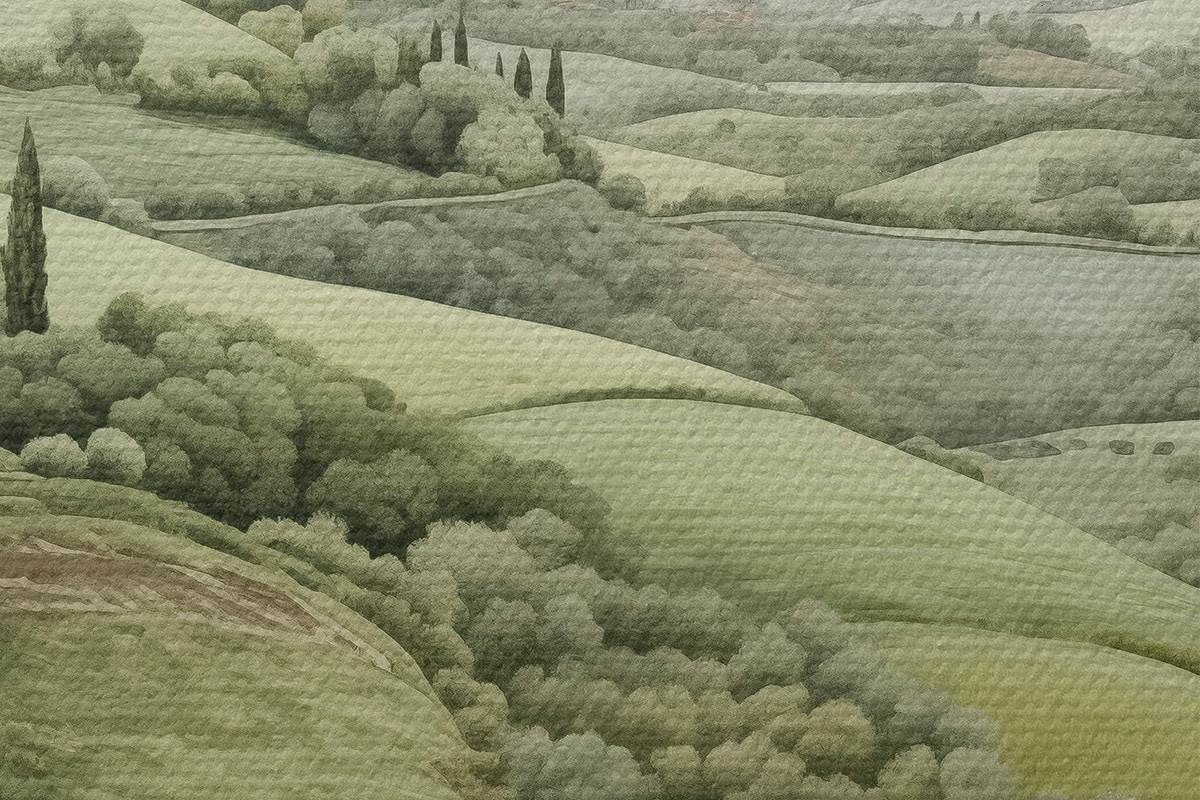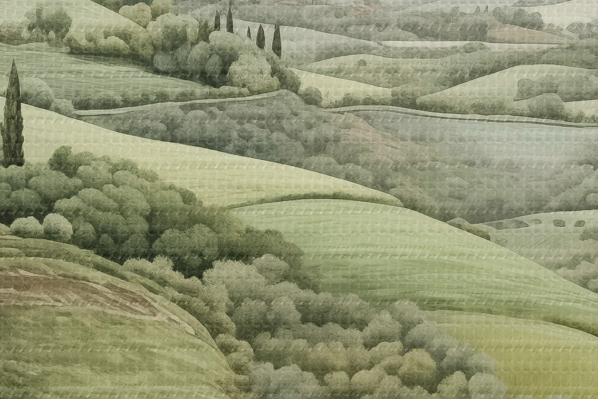 Obrázek Akvarelová krajina se stromy a horami, Toskánsko, léto Nr r41222