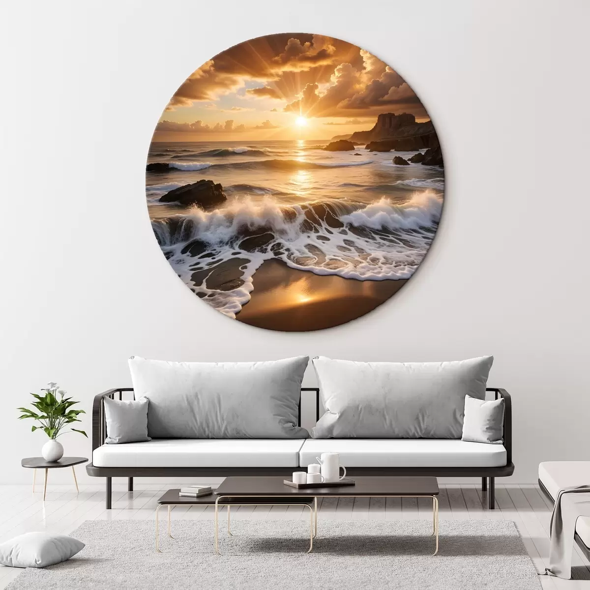 Obrázek Dramatický západ slunce nad skalnatým pobřežím s rozbíjejícími se vlnami a dramatickými mraky na obloze Nr r41245