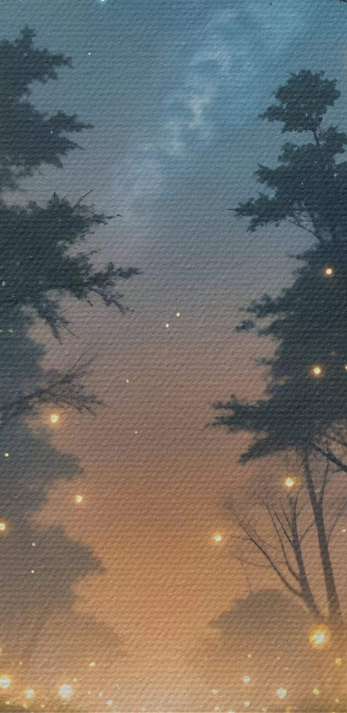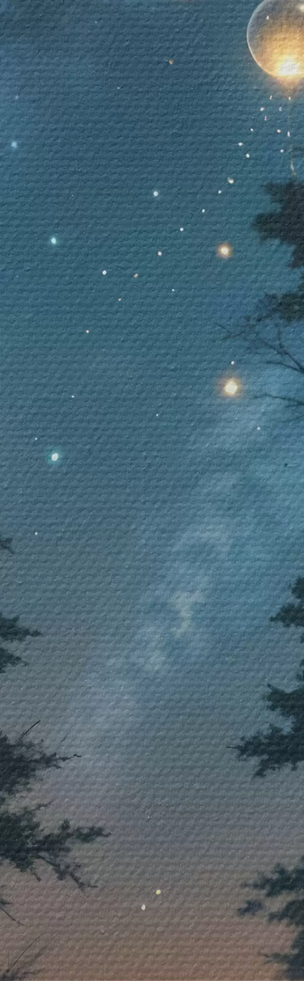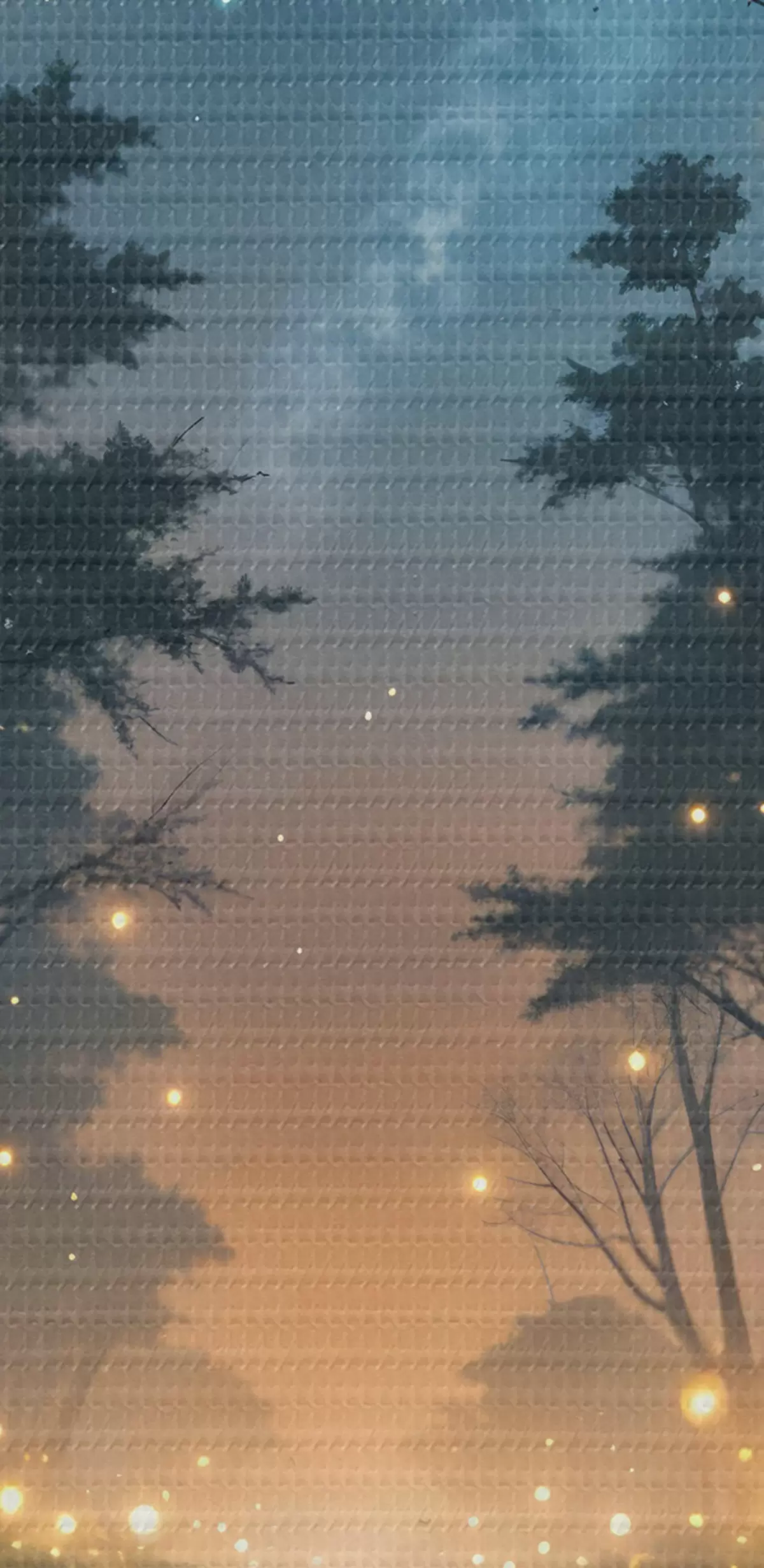 Obrázek Kouzelný noční les se žlutými koulemi a světluškami, které se vznášejí mezi stromy a vytvářejí rozmarnou atmosféru Nr r41259