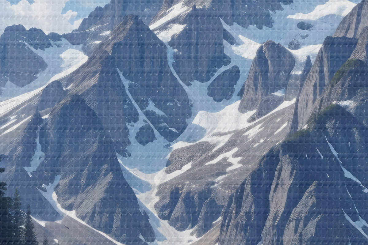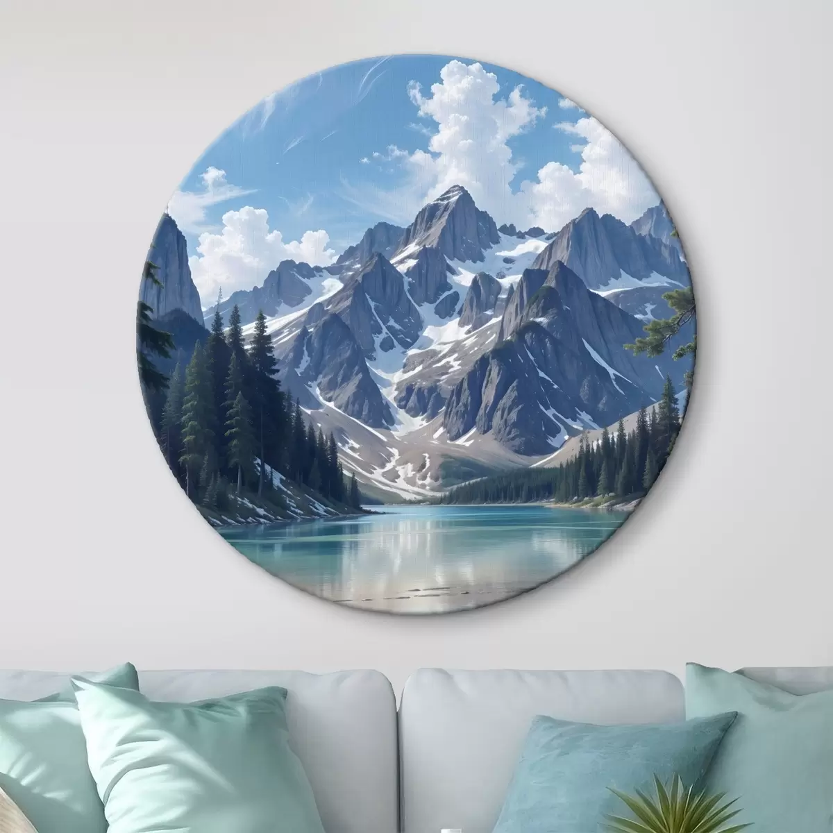 Obrázek Klidné alpské jezero obklopené majestátními zasněženými horami, s hustým lesem a zataženou oblohou Nr r41264