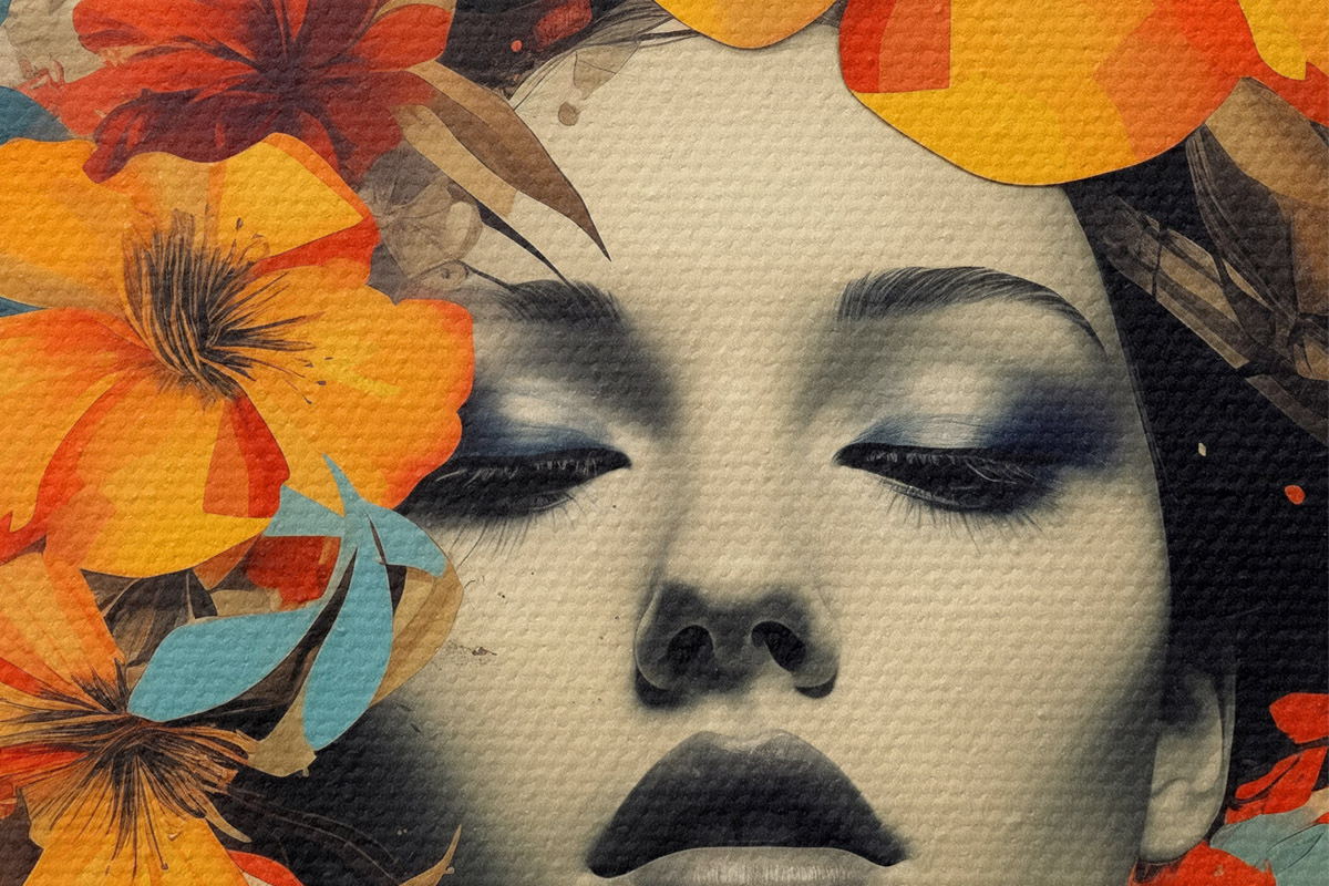 Obrázek Dívčí portrét ve stylu koláže s květinami Nr r41271