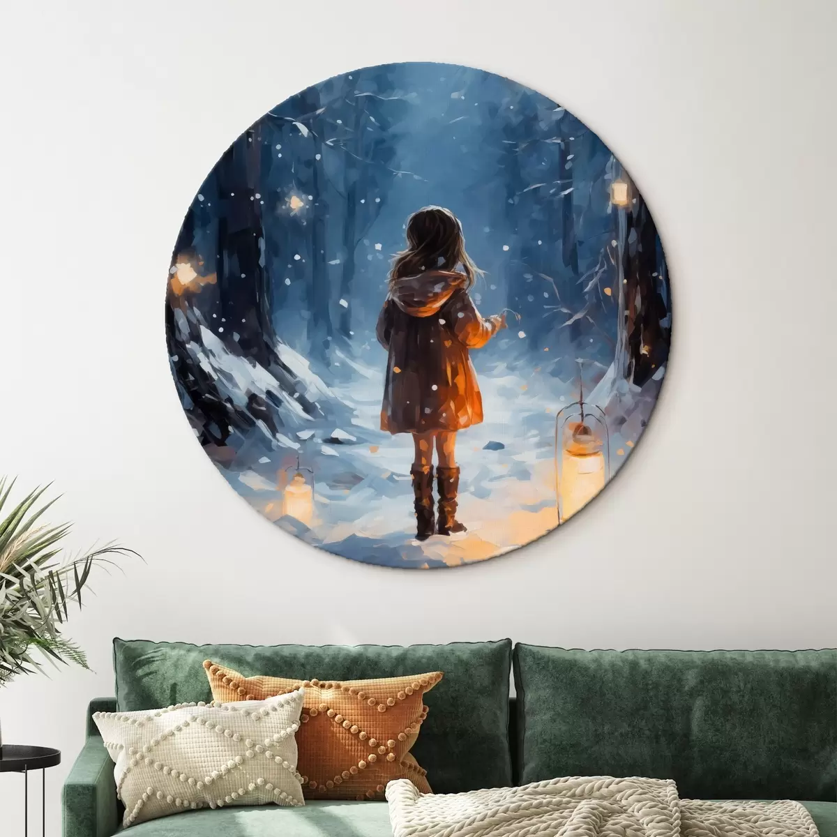 Obrázek Dívka v nočním zimním lese mezi stromy a lucernami Nr r41277