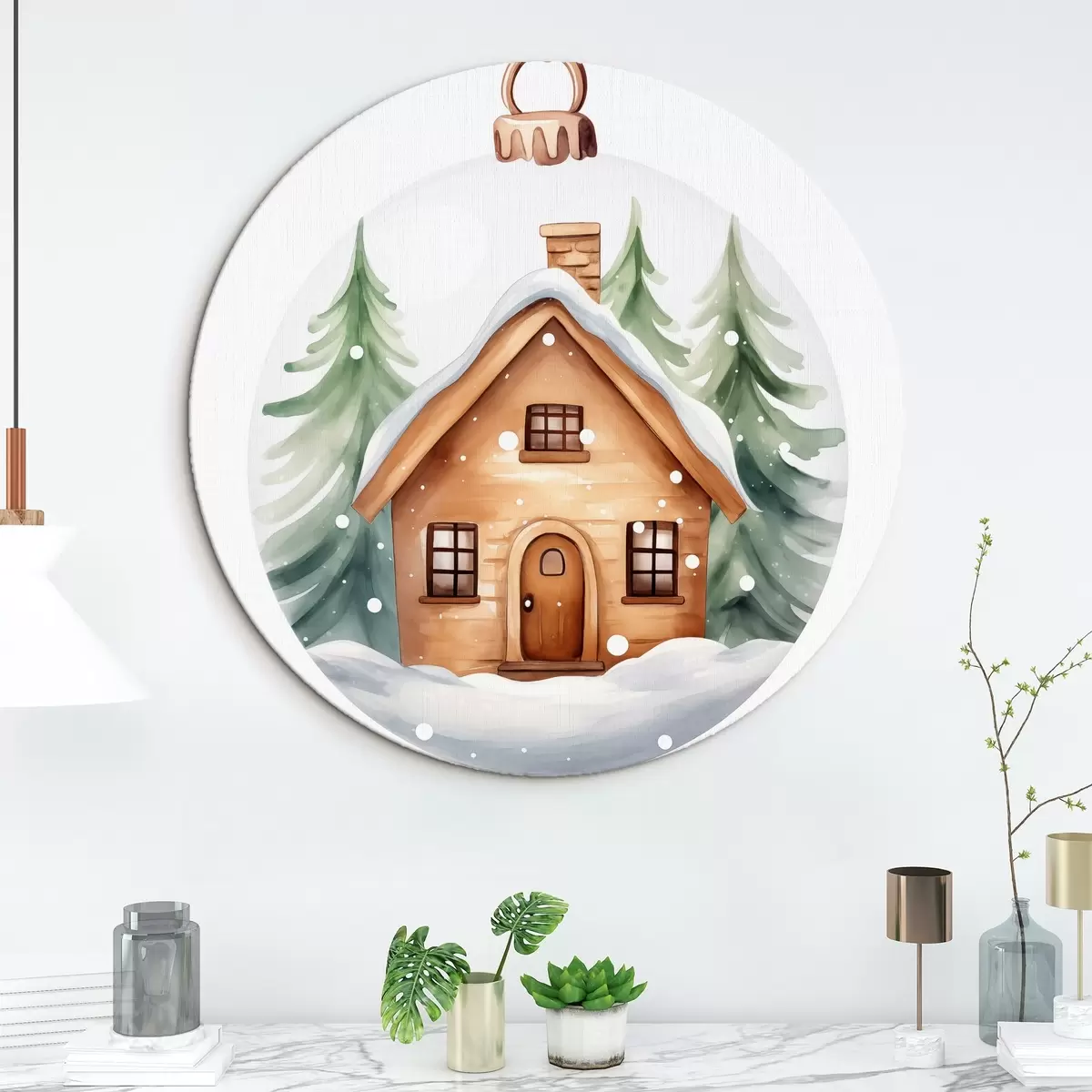 Obrázek Křišťálová koule s akvarelovým domem na sněhu, borovice Nr r41362