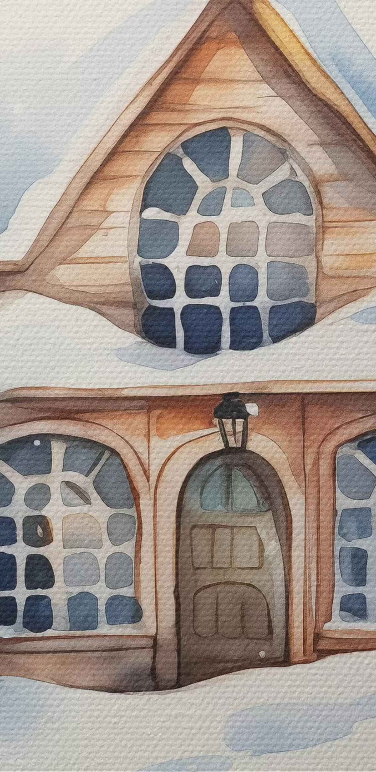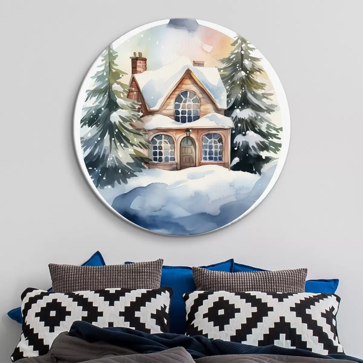 Obrázek Vánoční dekorativní koule s akvarelovým sněhovým domečkem a borovicemi Nr r41363