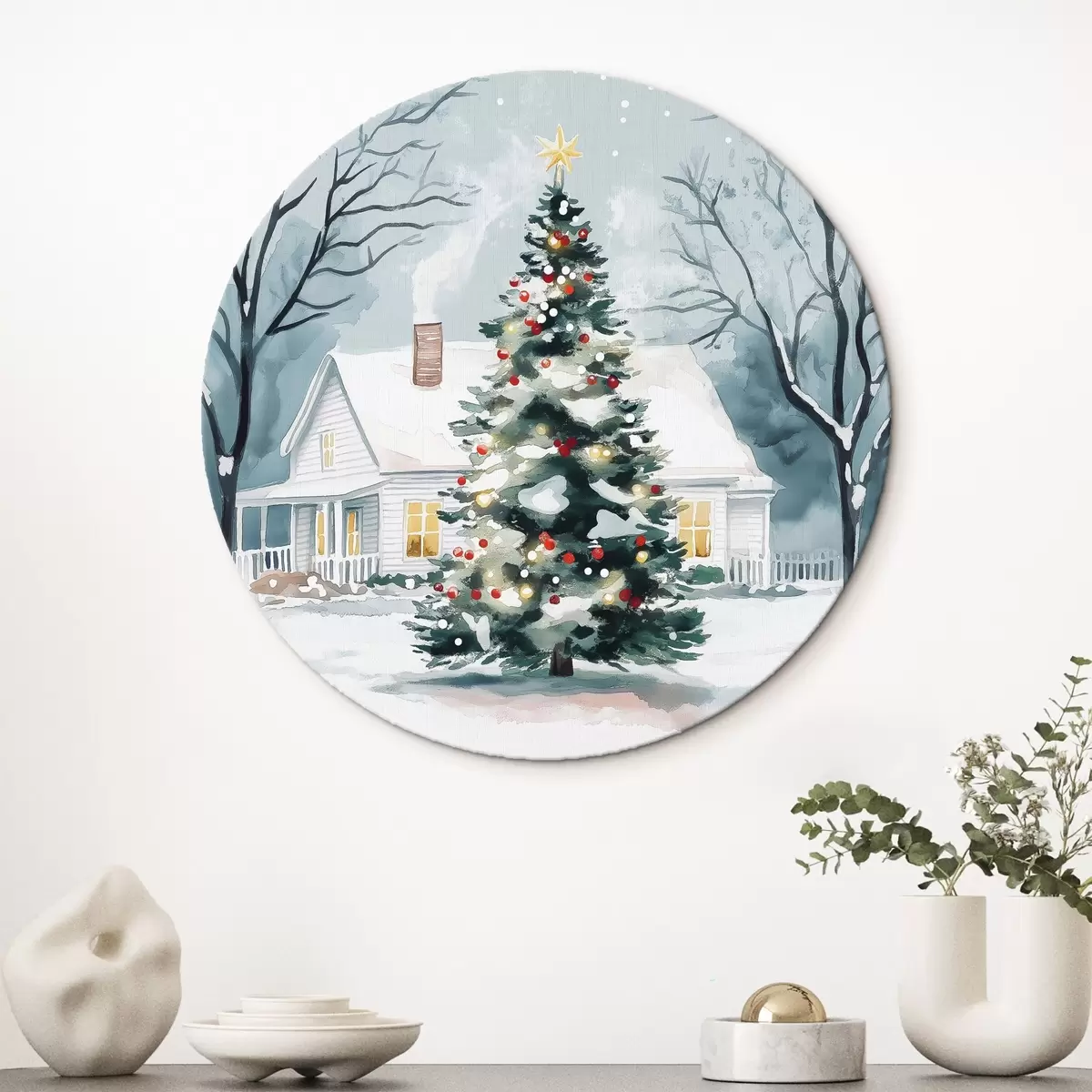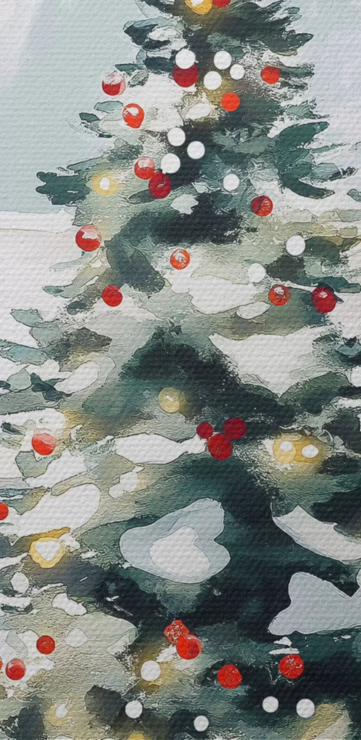 Obrázek Zimní město, ozdobená borovice, Vánoce, akvarel Nr r41364