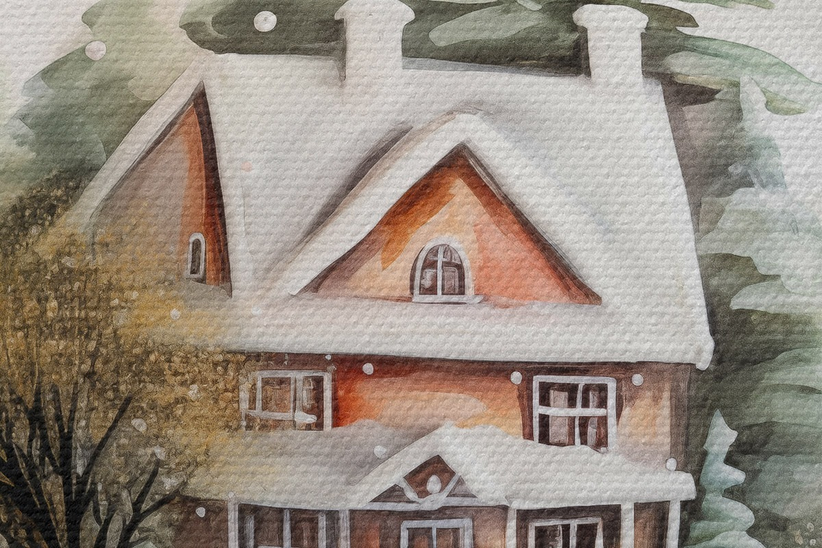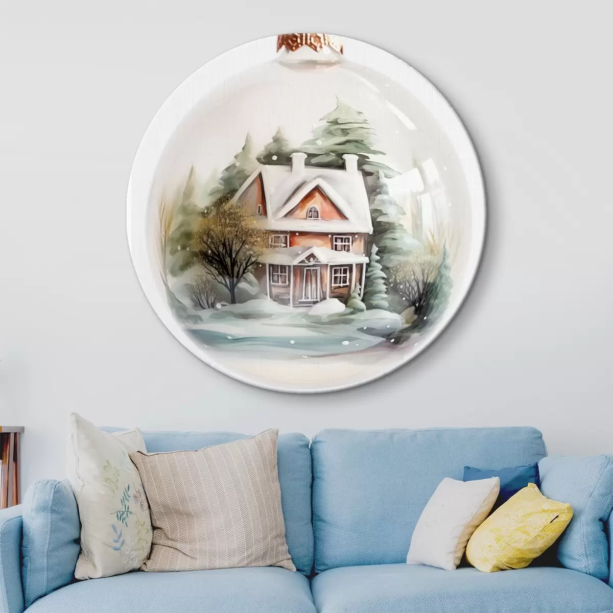 Obrázek Křišťálová koule s akvarelovým domem a stromy na sněhu Nr r41365