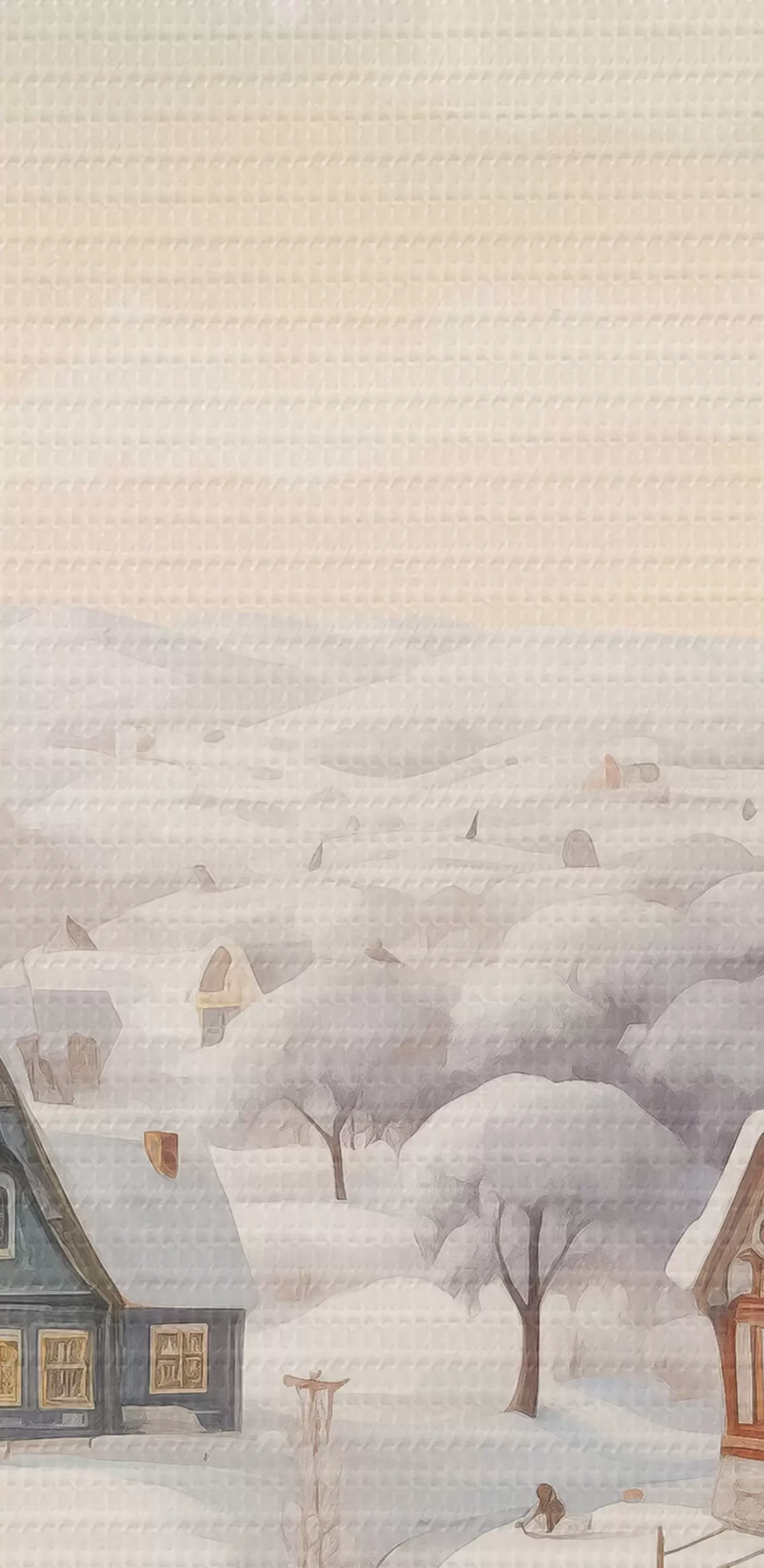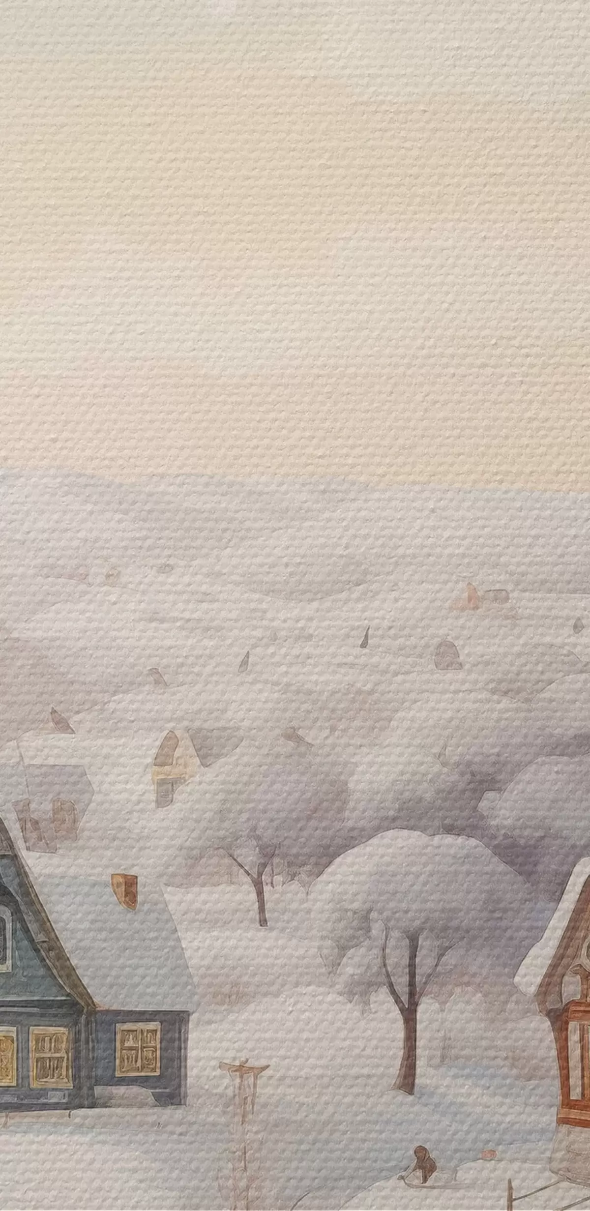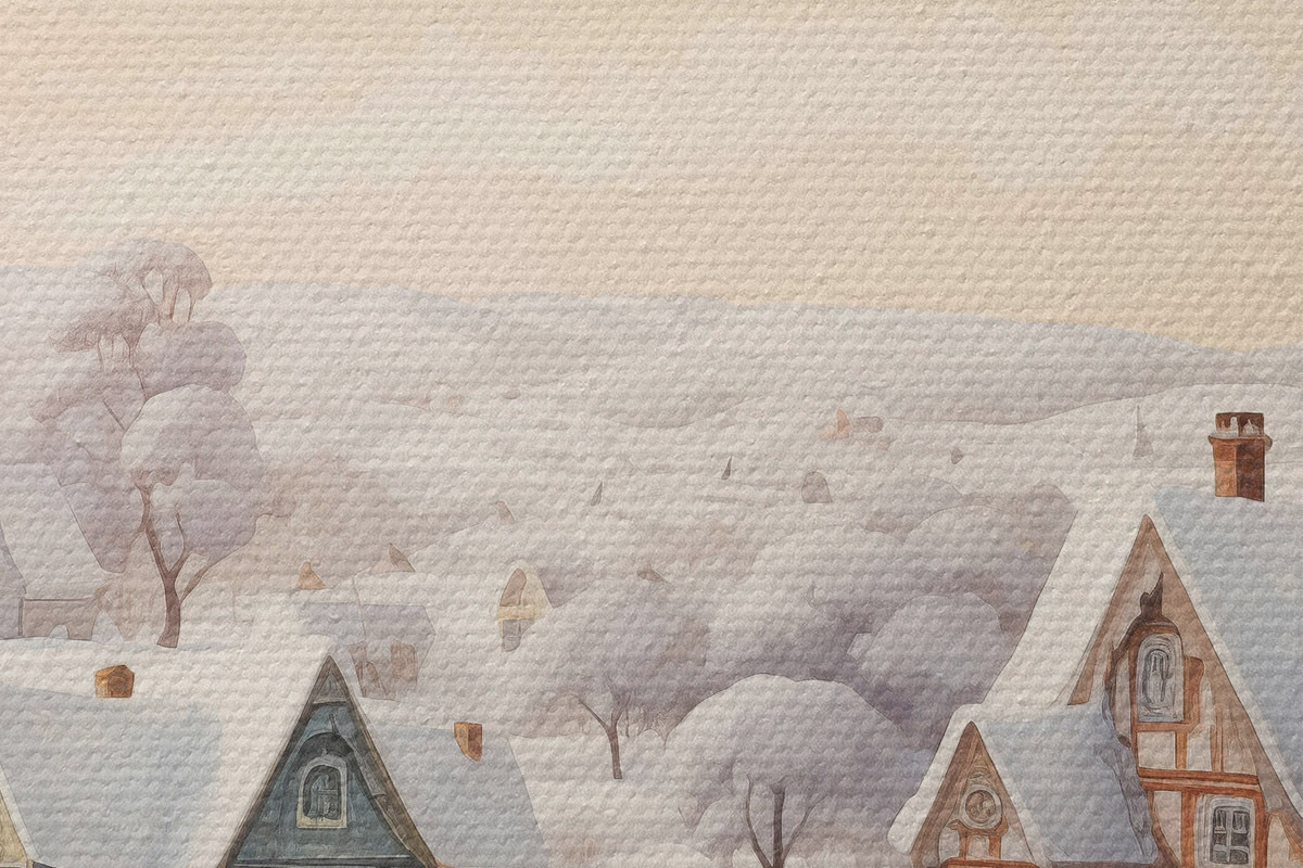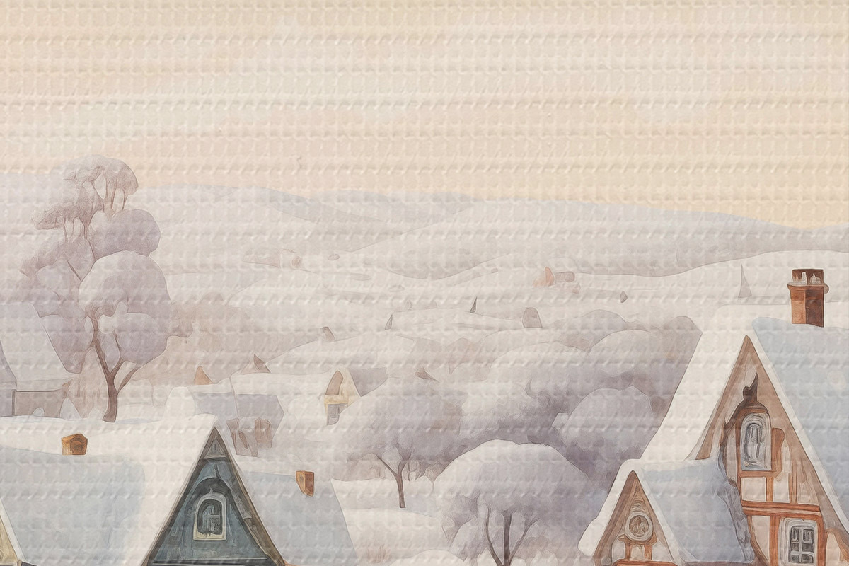 Obrázek Krásná zimní krajina s vesnicí, stromy, domy, akvarel Nr r41379