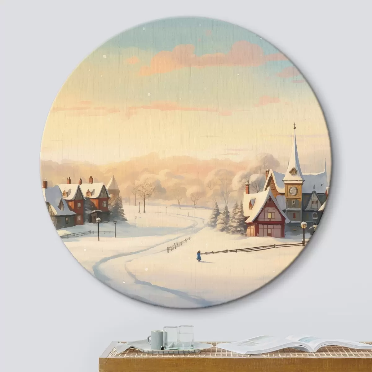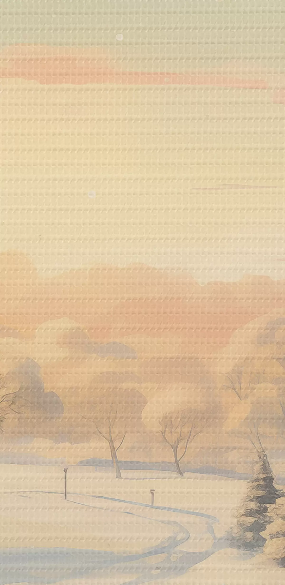 Obrázek Zimní krajina, domy, obloha při západu slunce, stromy, akvarel Nr r41383