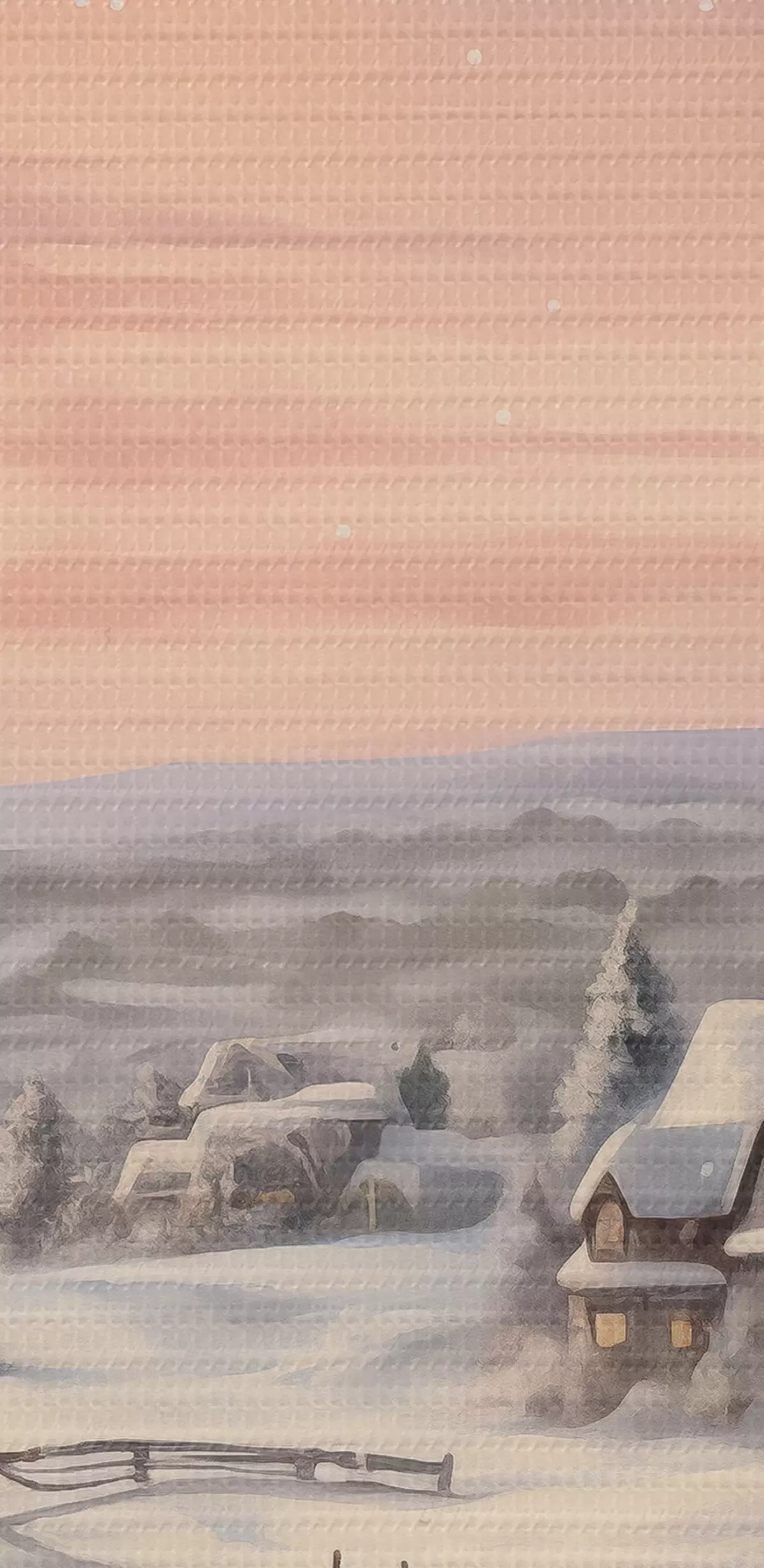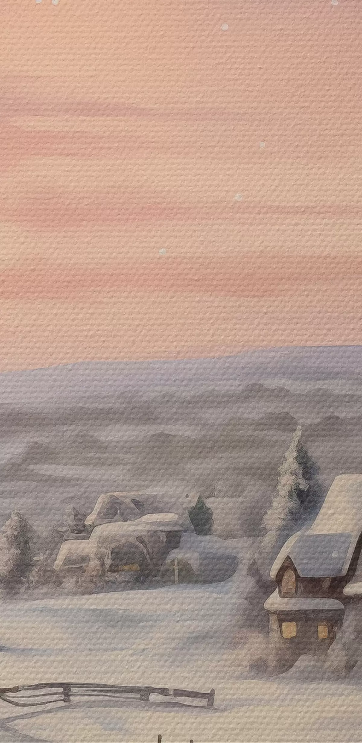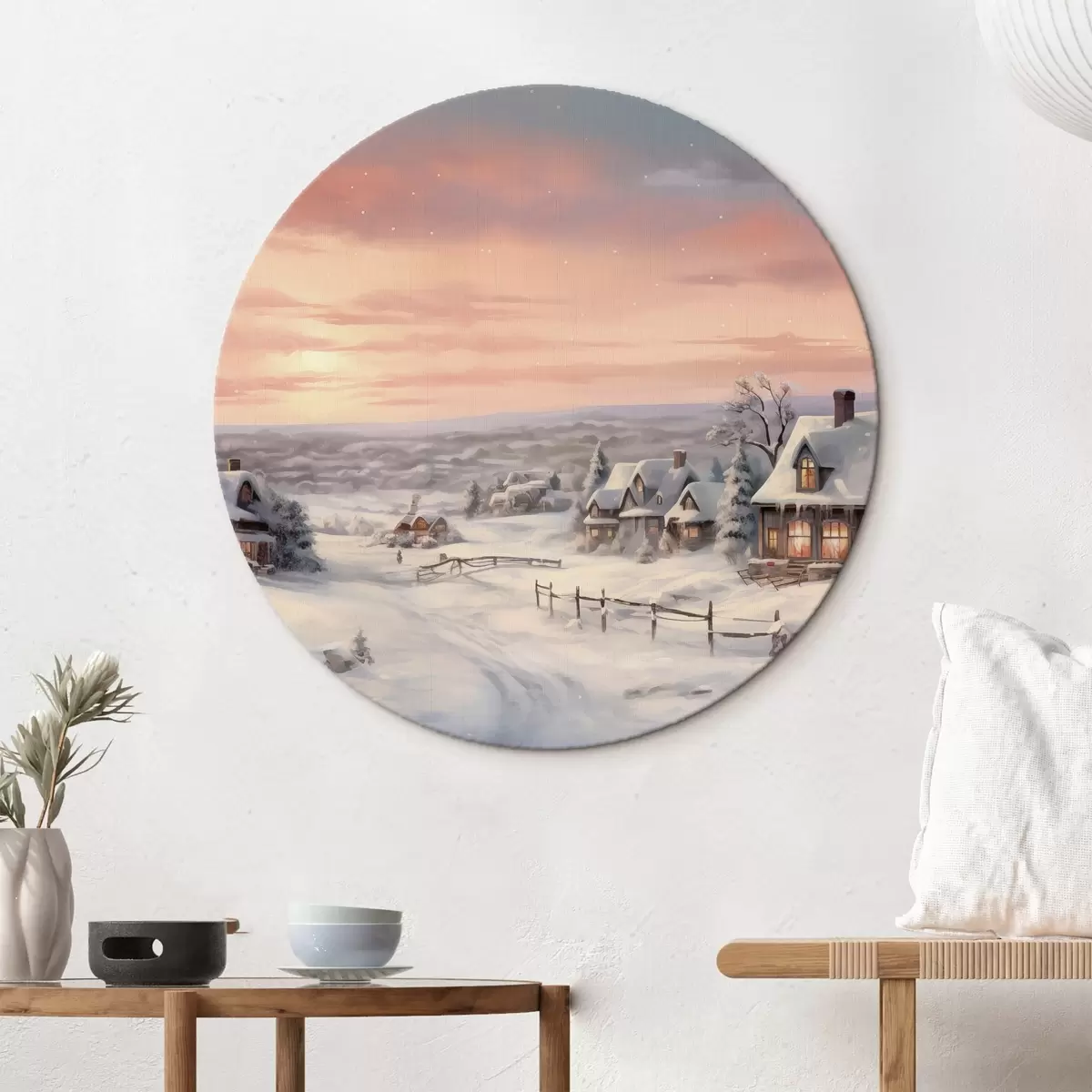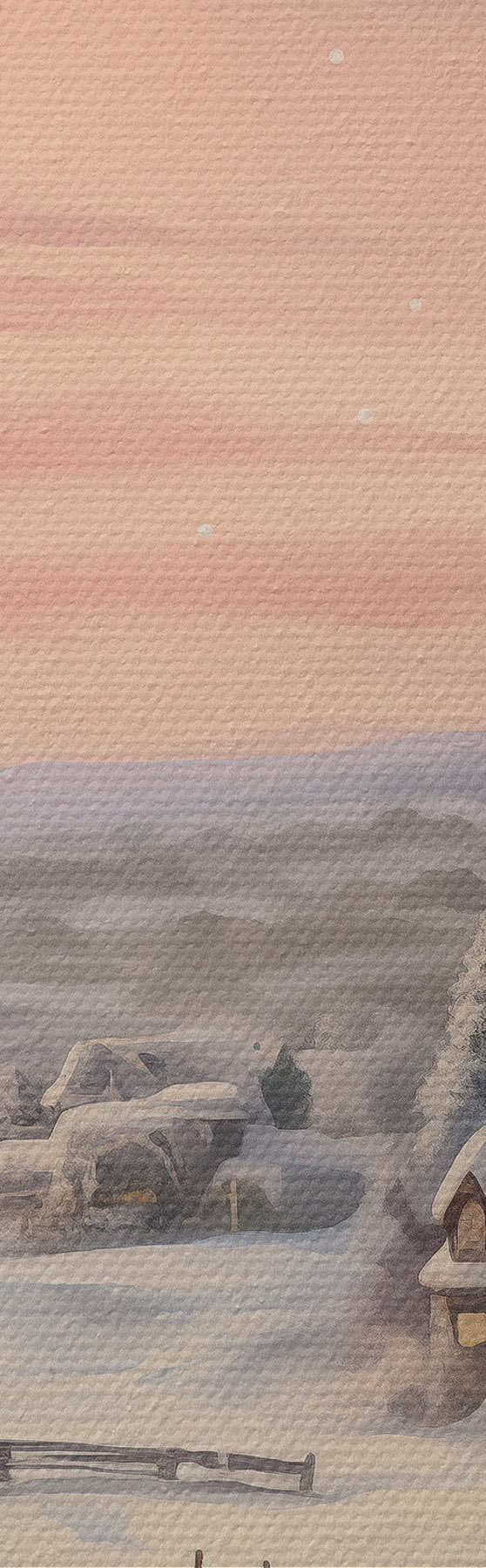 Obrázek Západ slunce v zimní vesnici, rustikální, akvarel, sněhové vločky Nr r41386