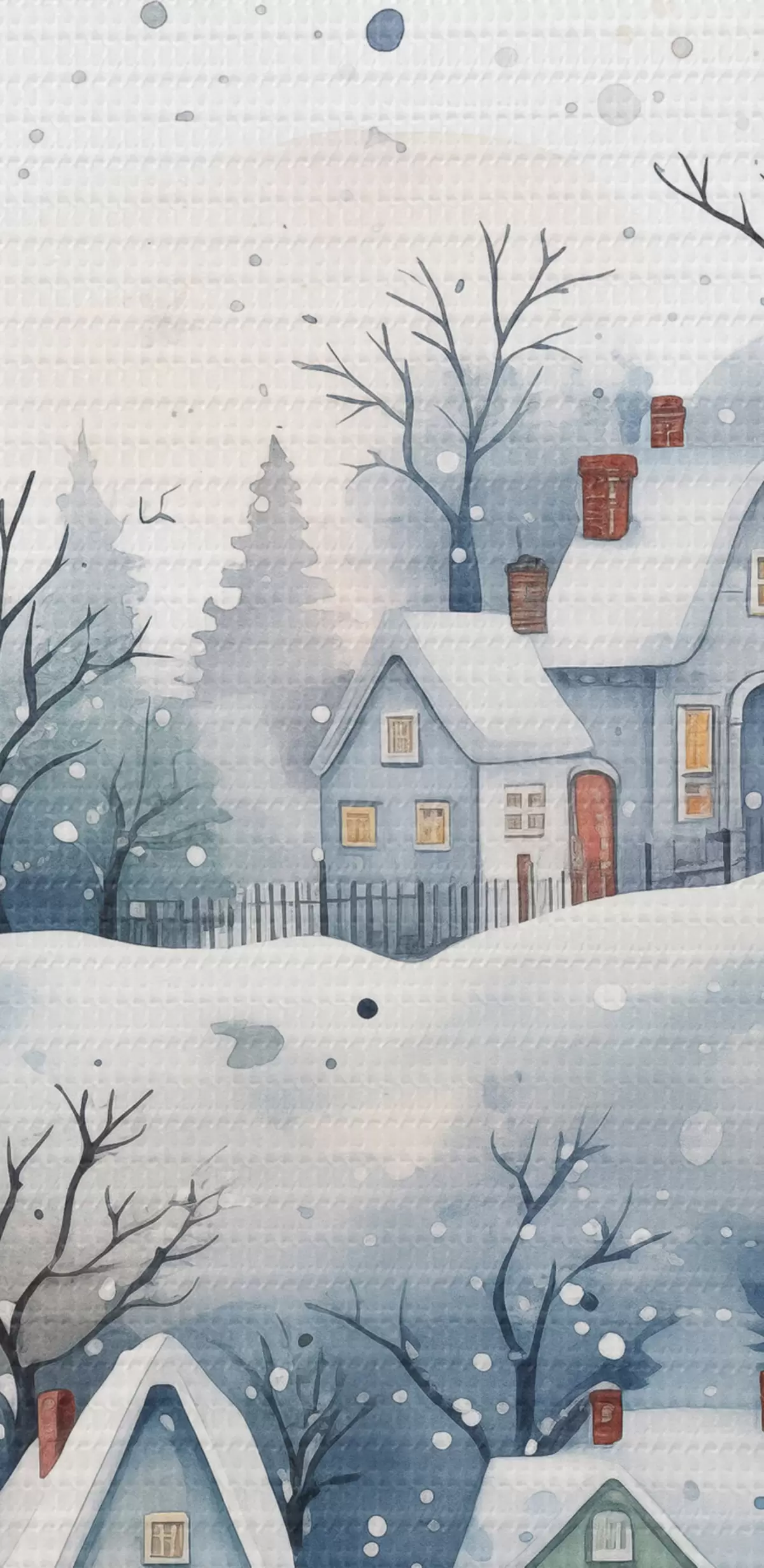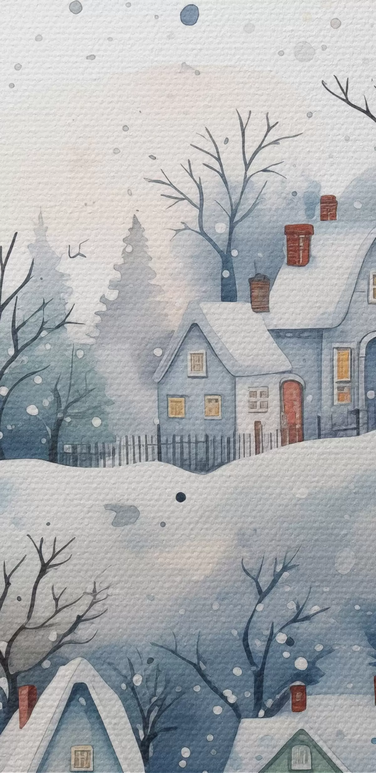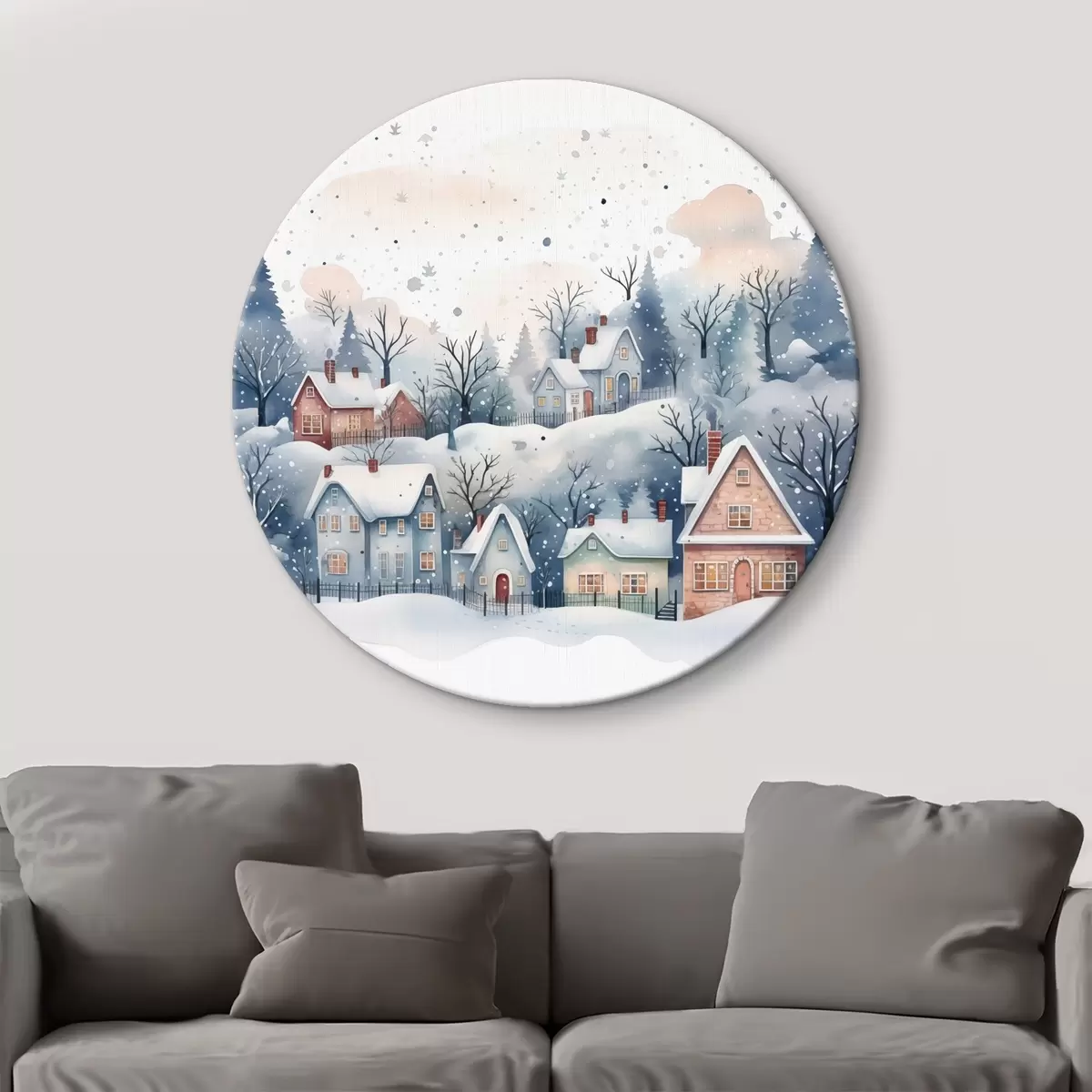 Obrázek Akvarelová zimní krajina s domy a borovým lesem Nr r41389