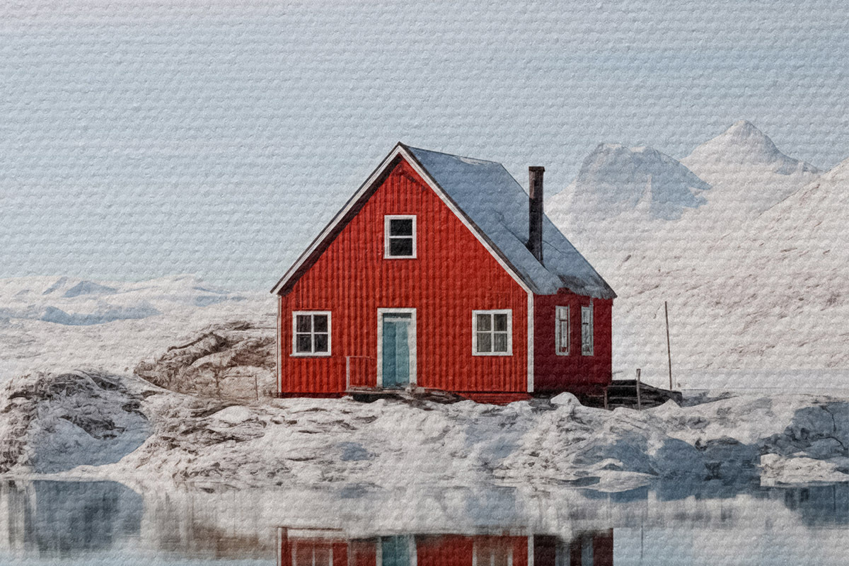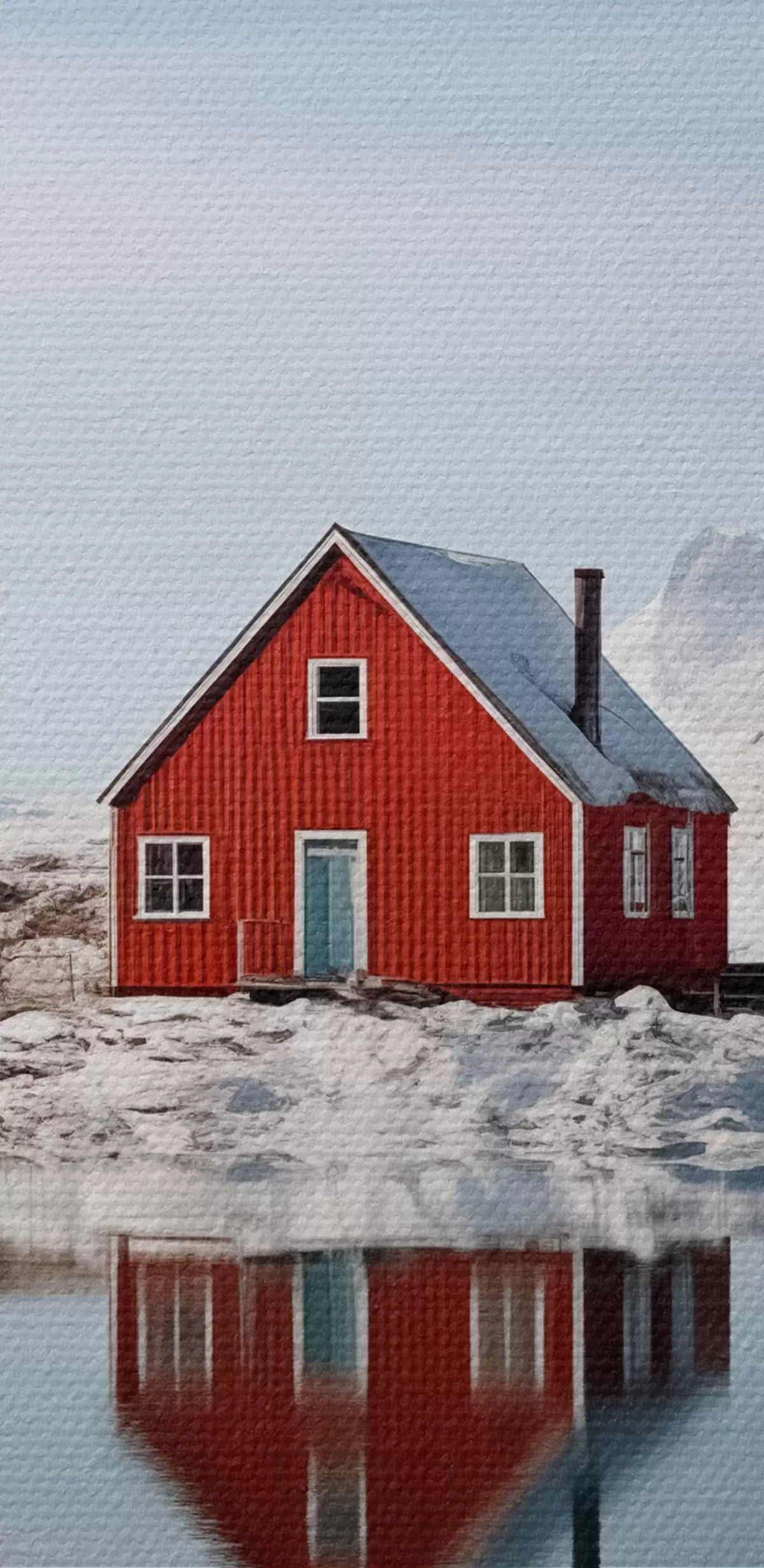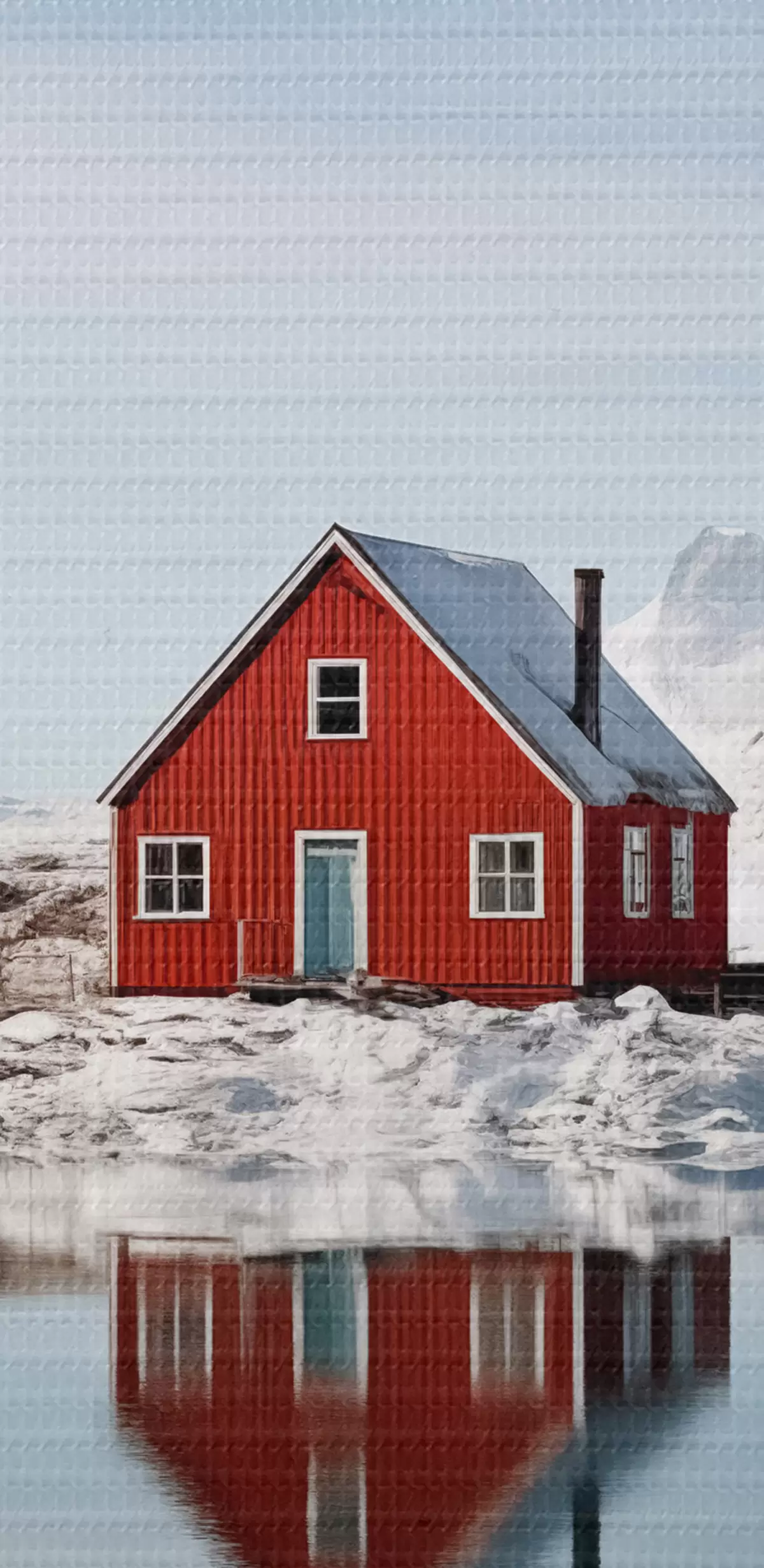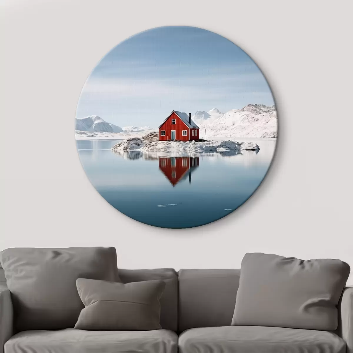 Obrázek Minimalistická zimní krajina červený dům u jezera Nr r41437