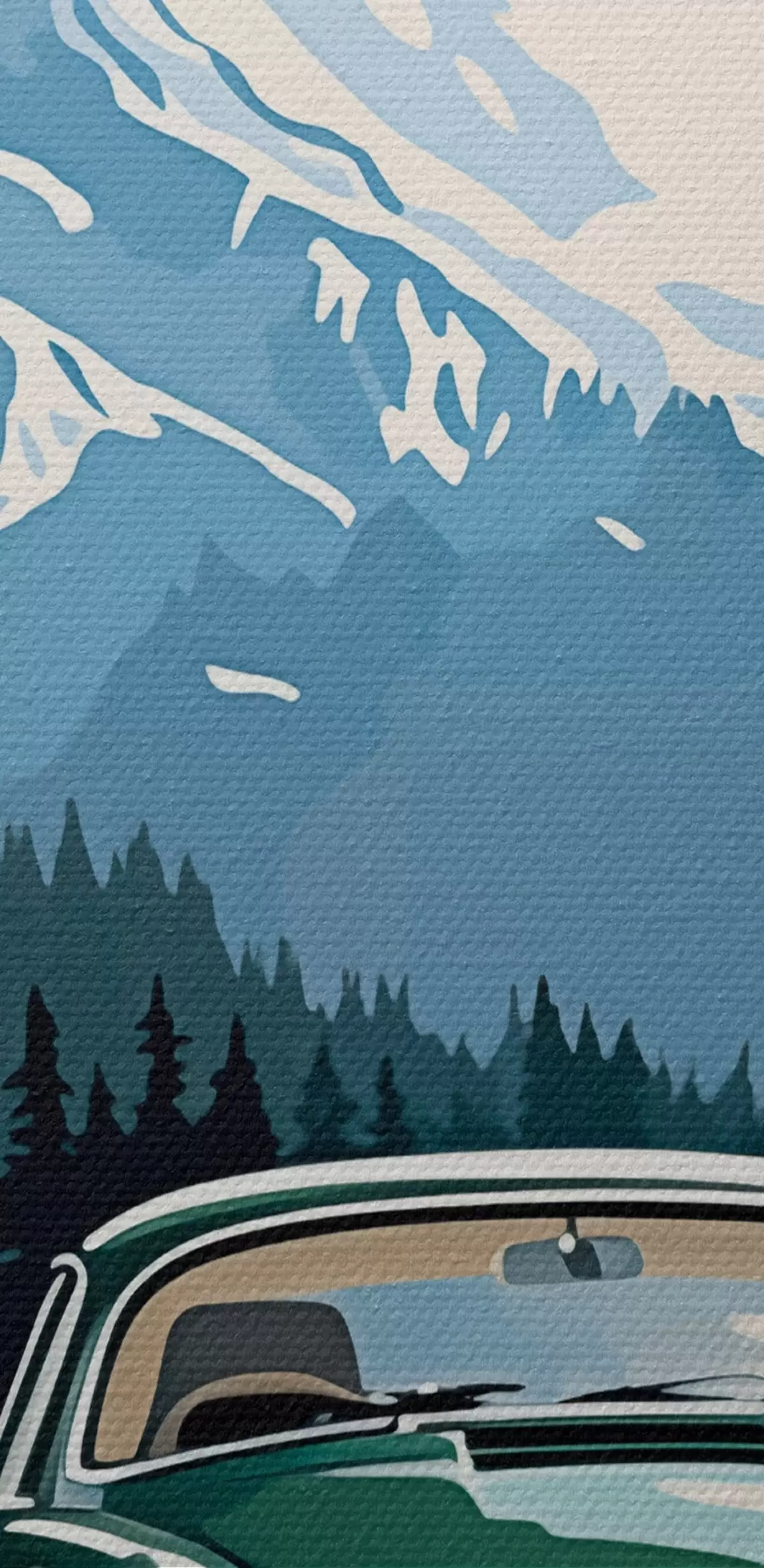 Obrázek Retro auto na zimní horské silnici Nr r41478