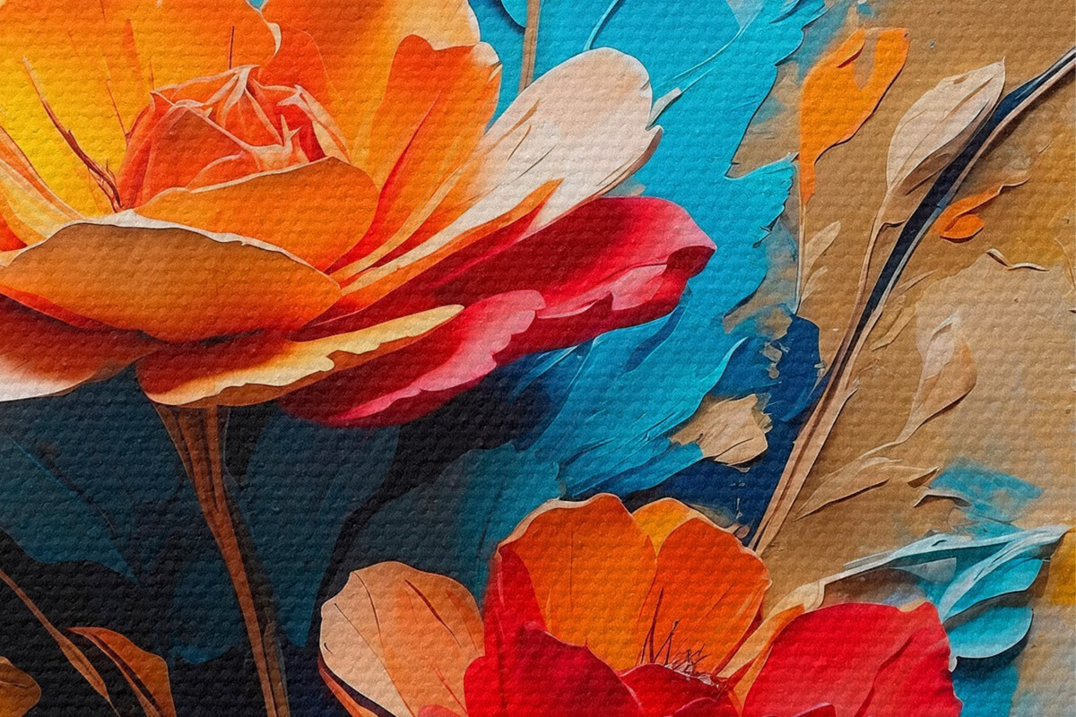Obrázek Květiny na abstraktním pestrobarevném pozadí ve stylu olejomalby Nr r41769