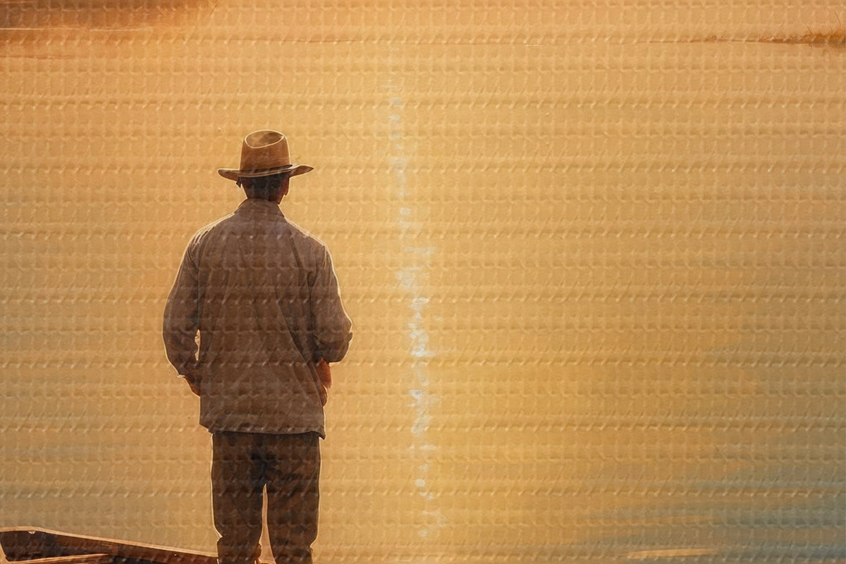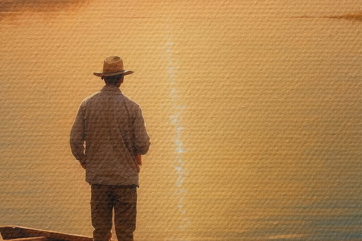 Obrázek Muž na lodi uprostřed jezera Nr r41770