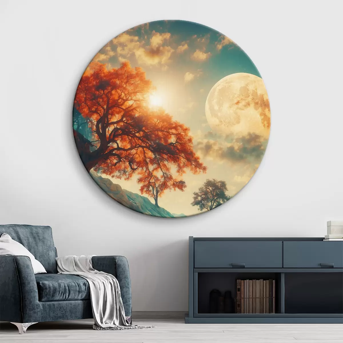 Obrázek Stromy a hory na obrovském měsíčním pozadí Nr r41774