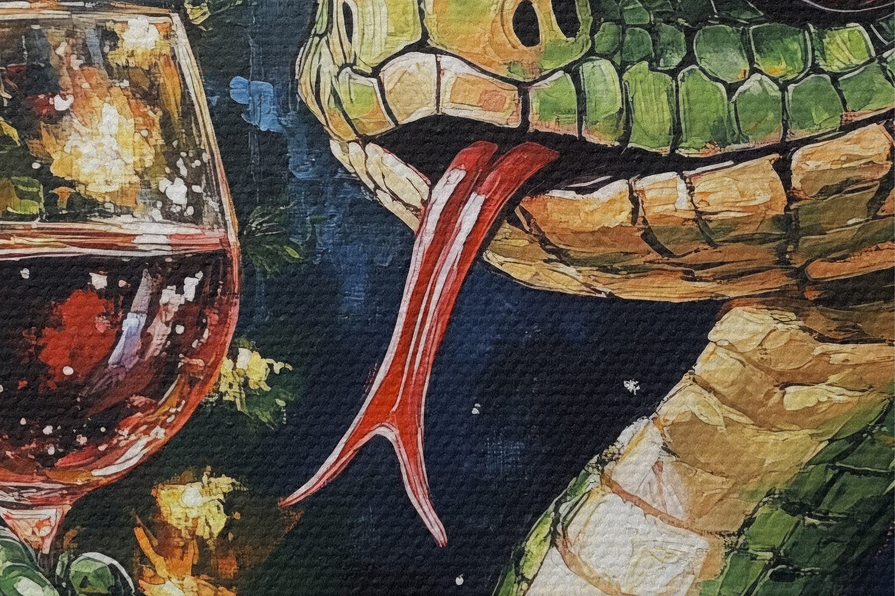 Obrázek Had se sklenkou vína slaví příchod nového roku Nr r42106