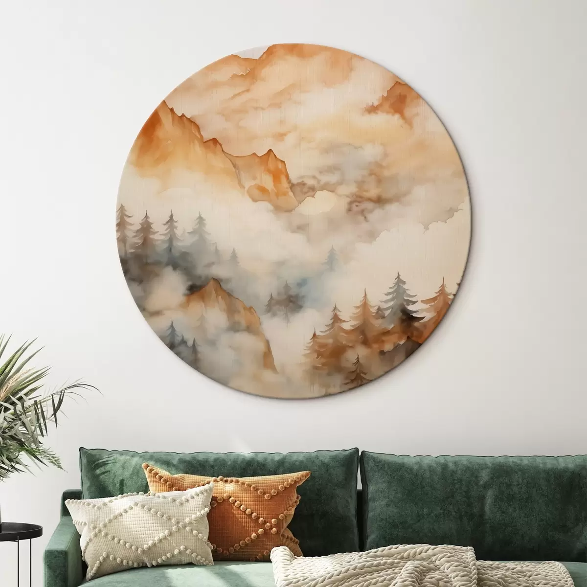 Obrázek Les a hory imitující akvarel, oranžové odstíny Nr r42119