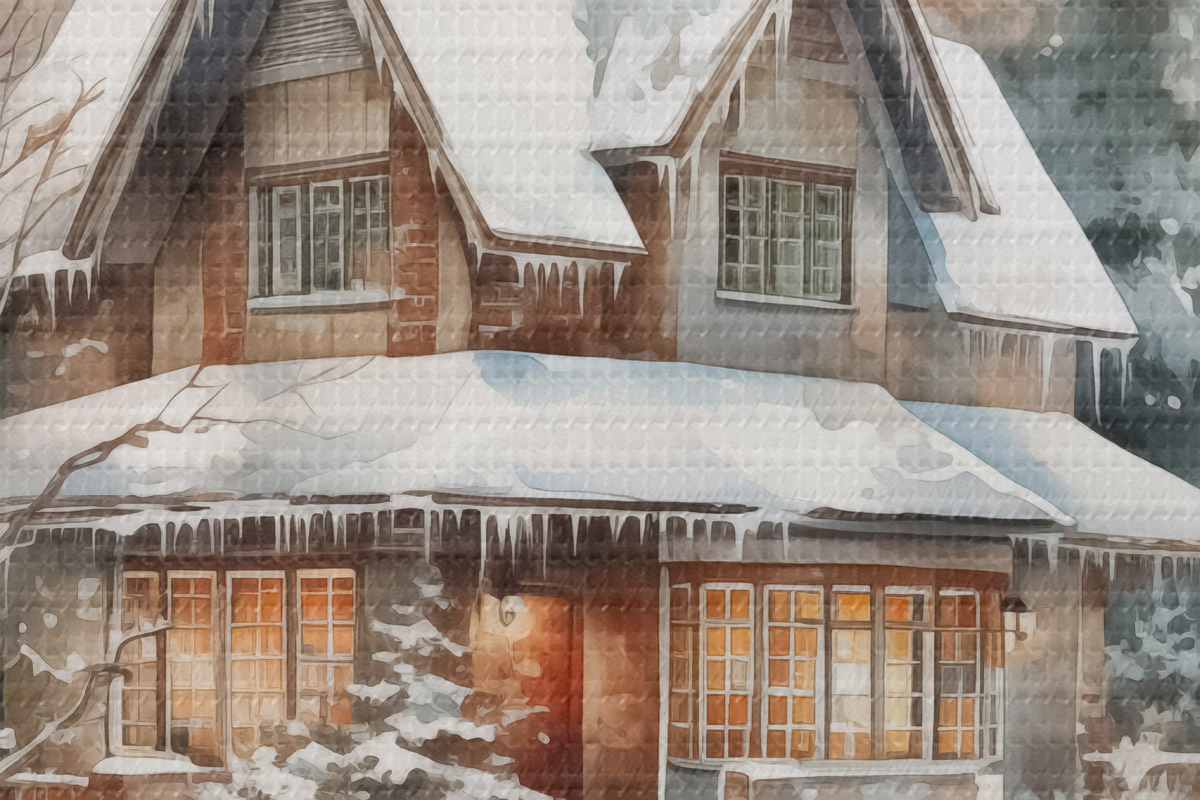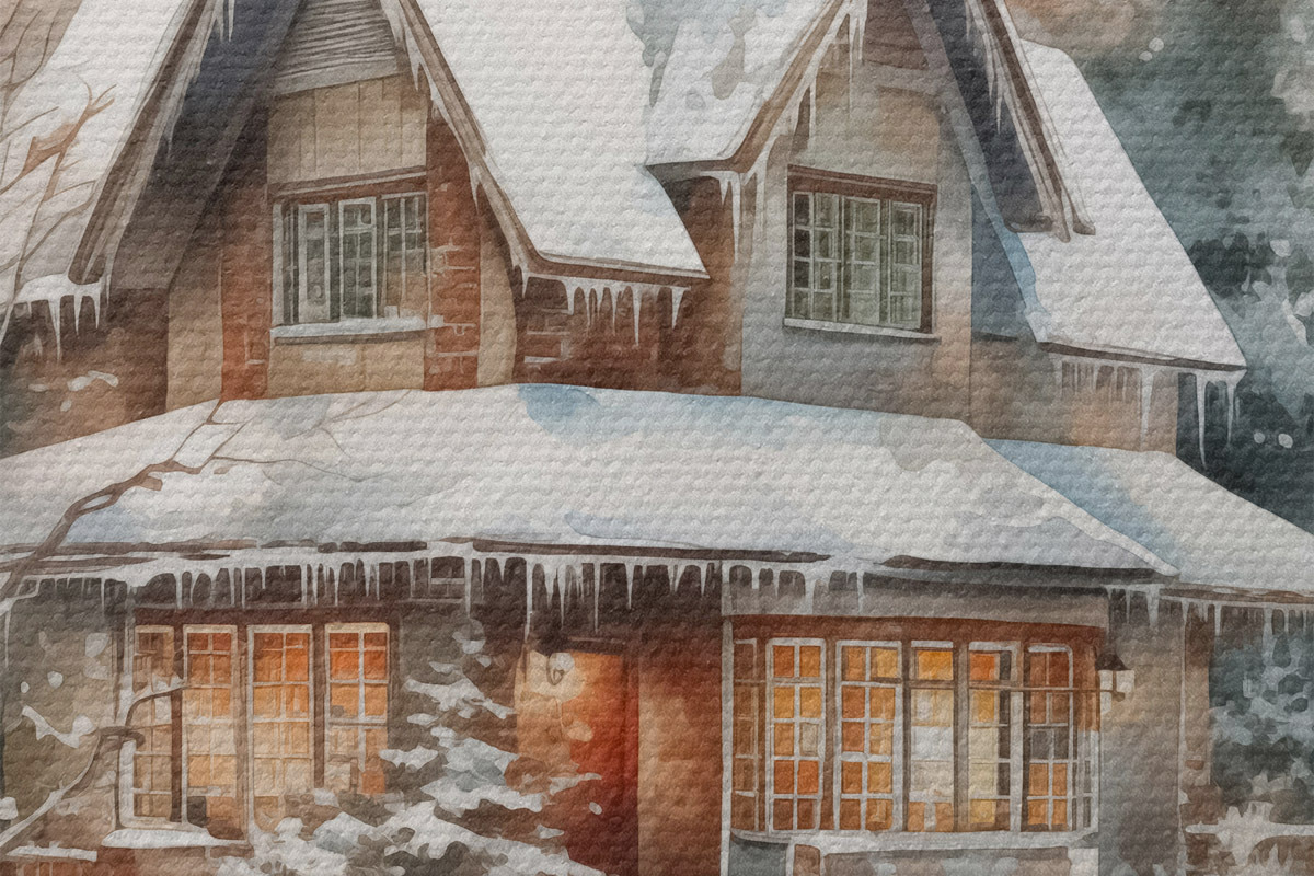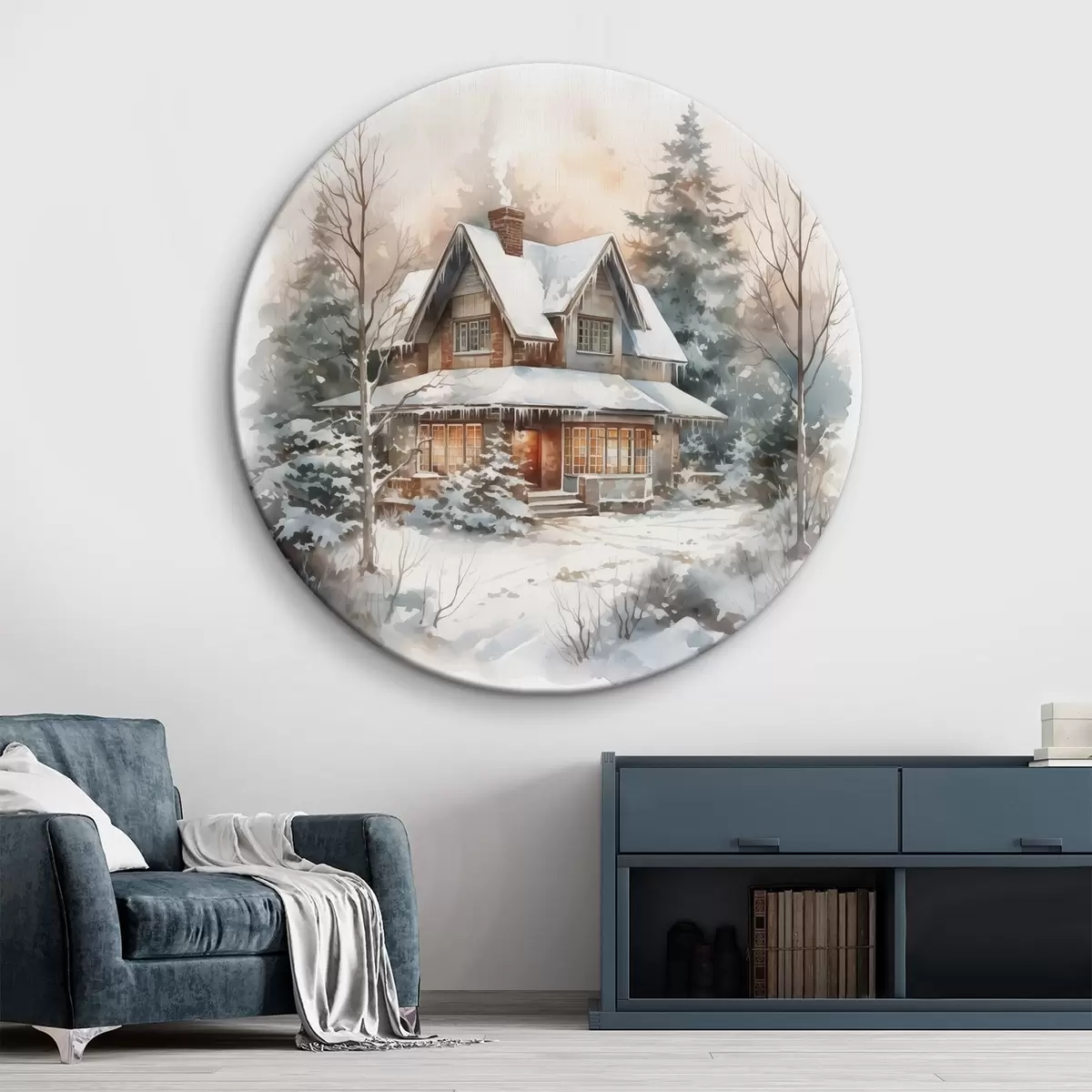 Obrázek Dům v zasněženém lese imitace akvarelu Nr r42137