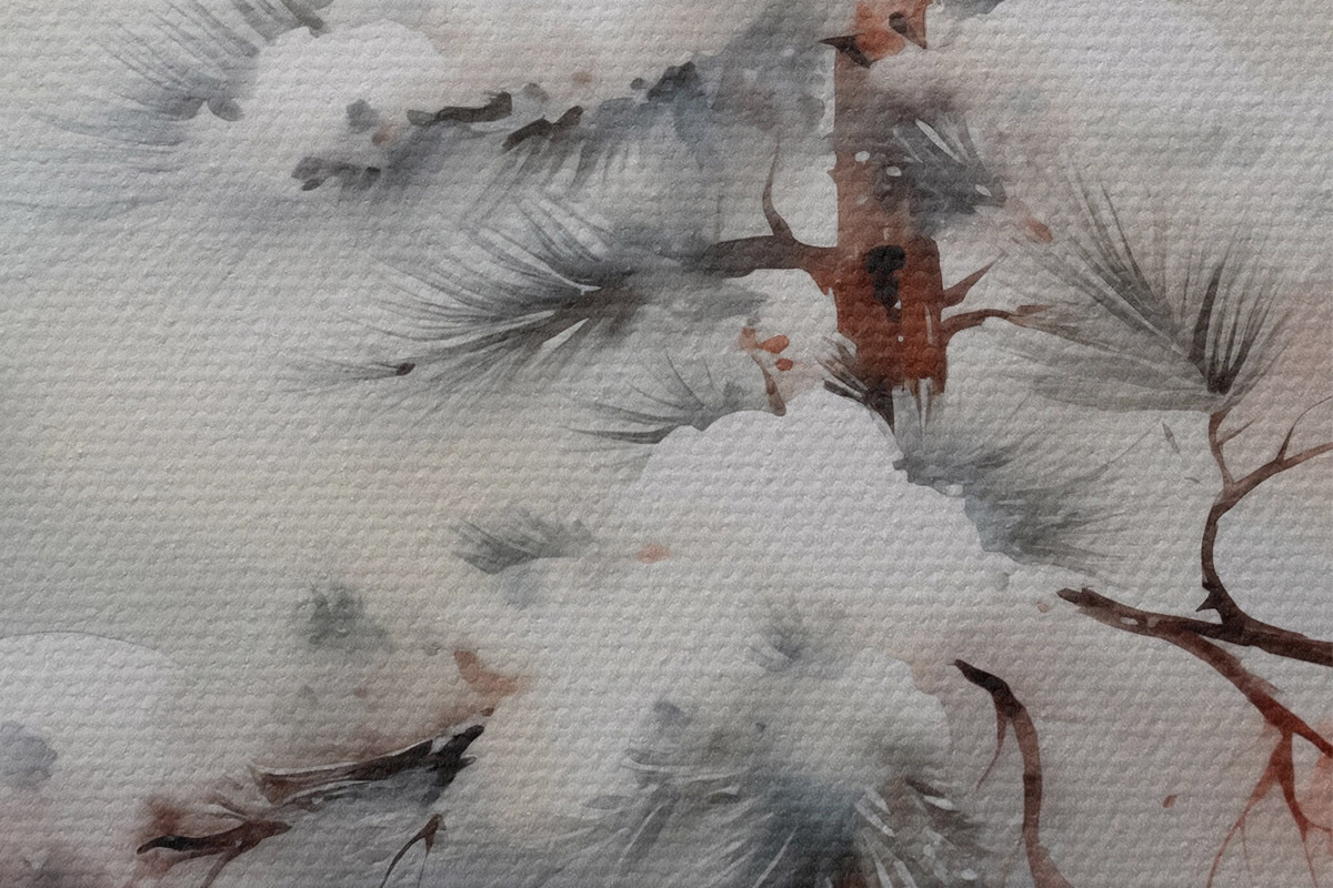 Obrázek Strom v zasněženém lese imitace akvarelu Nr r42139
