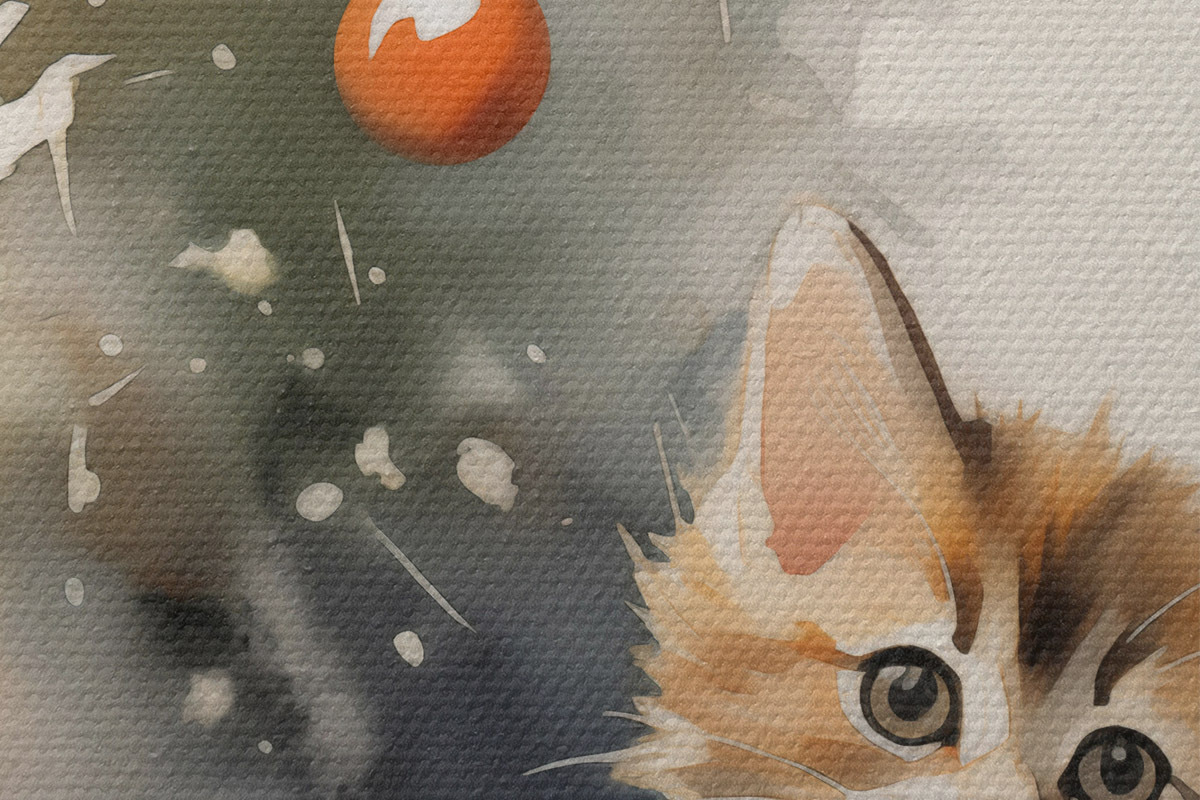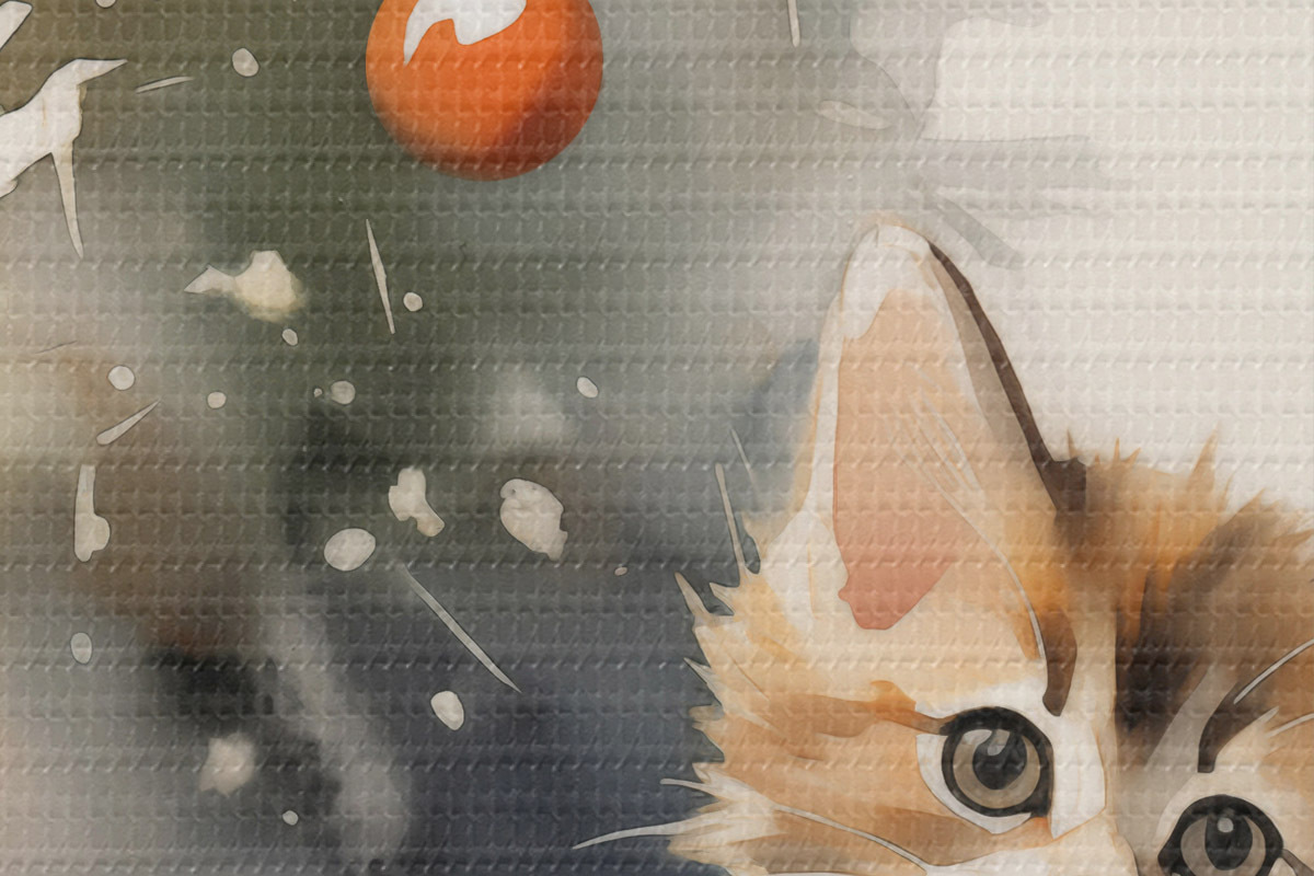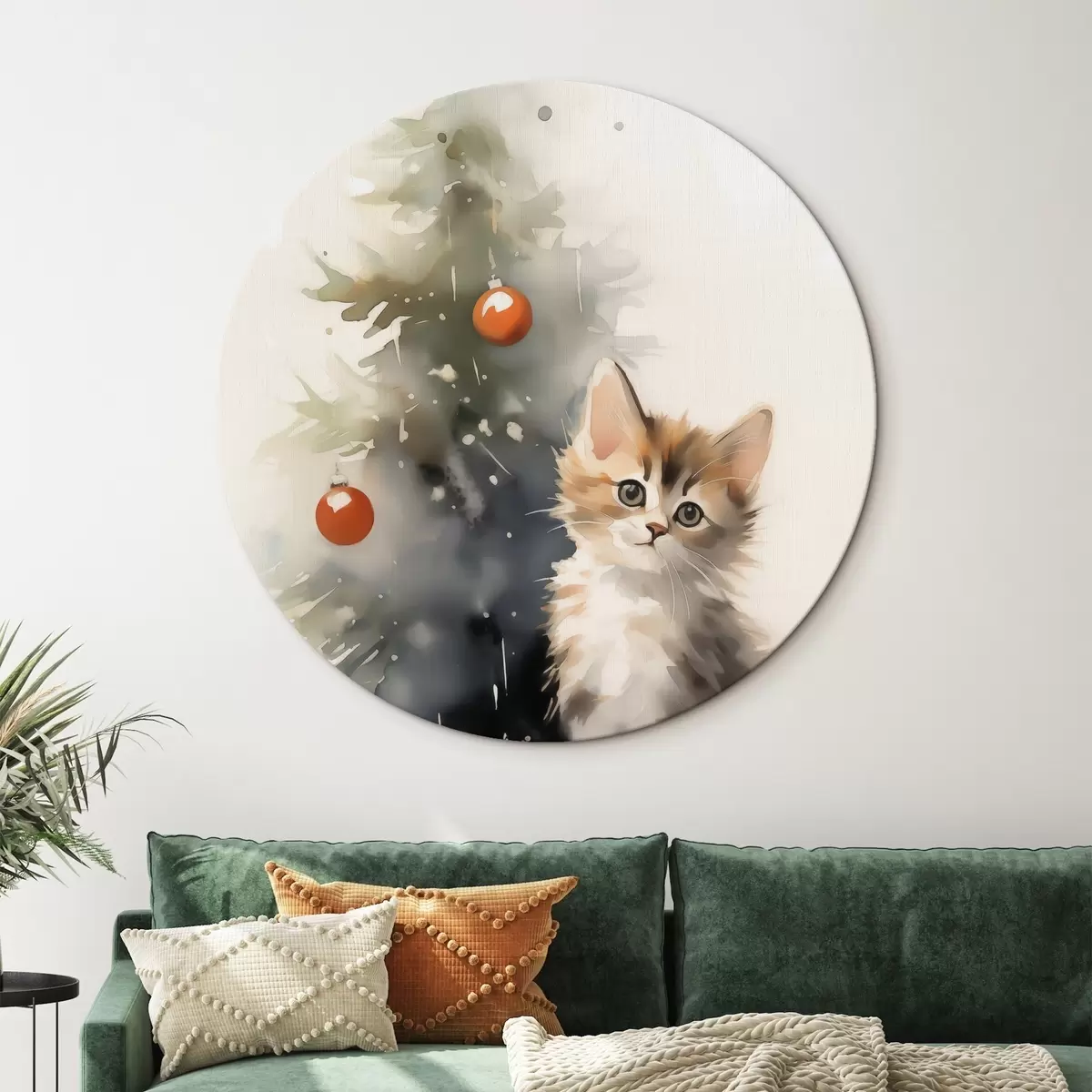 Obrázek Koťátko u vánočního stromku imitace mokrého akvarelu Nr r42140