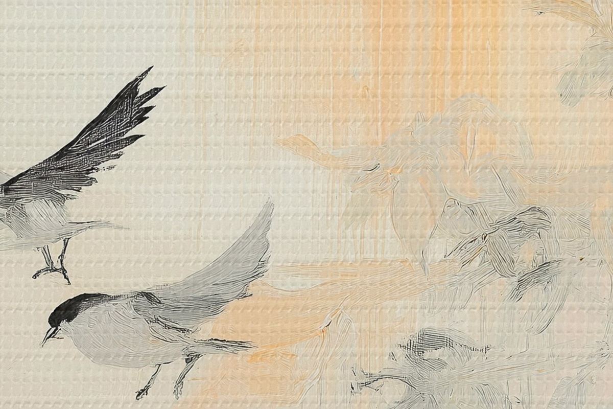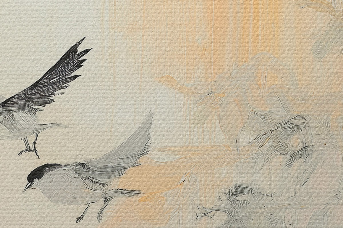Obrázek Abstrakce s ptáky, akryl, šedé a béžové barvy Nr r42206