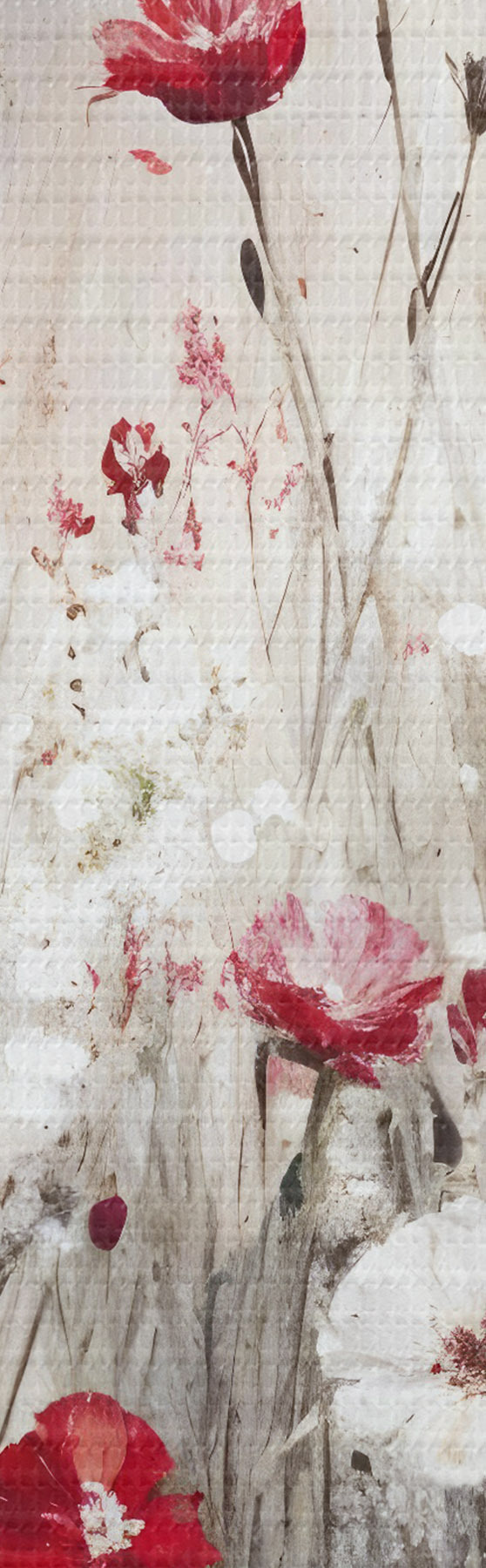 Obrázek Abstraktní imitace olejomalby pole červených a bílých květů máků a sedmikrásek na šedém texturovaném pozadí Nr r42213