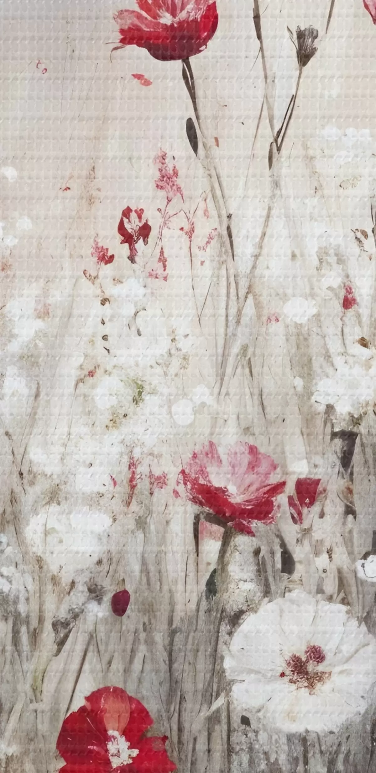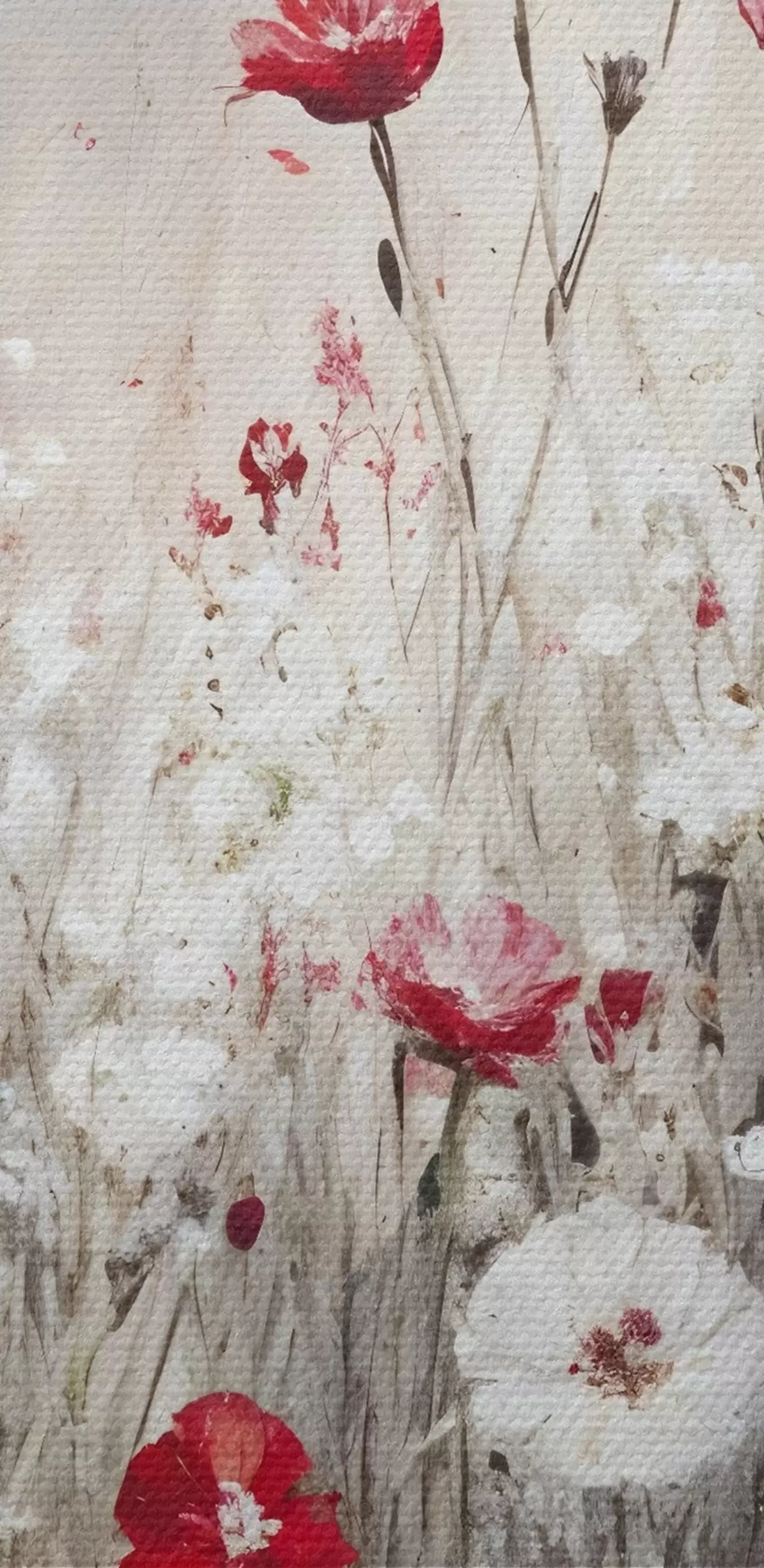 Obrázek Abstraktní imitace olejomalby pole červených a bílých květů máků a sedmikrásek na šedém texturovaném pozadí Nr r42213