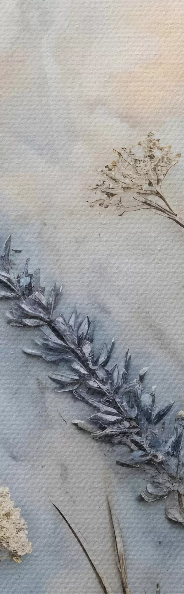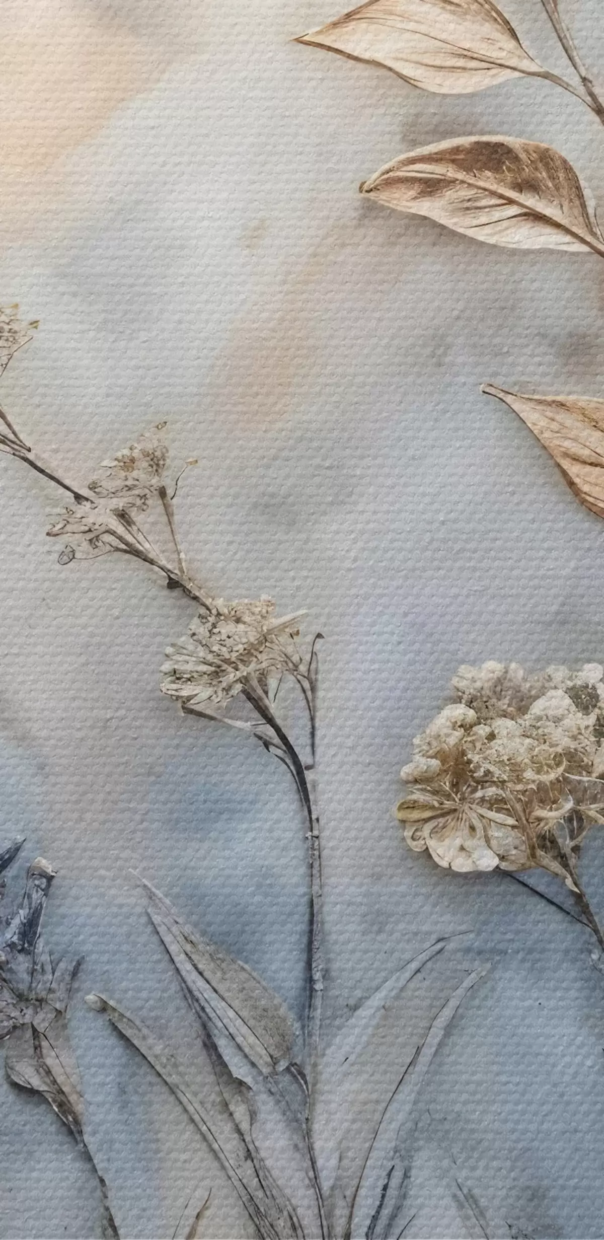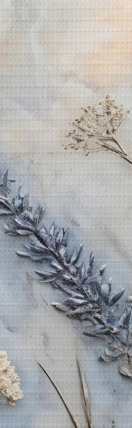 Obrázek Pole různých divokých květin a rostlin v odstínech modré, bílé a béžové na jemném, mlhavém pozadí Nr r42214