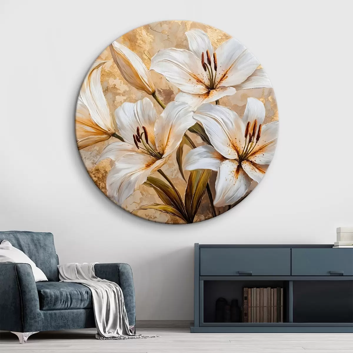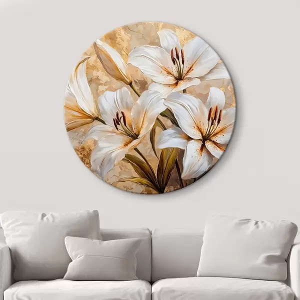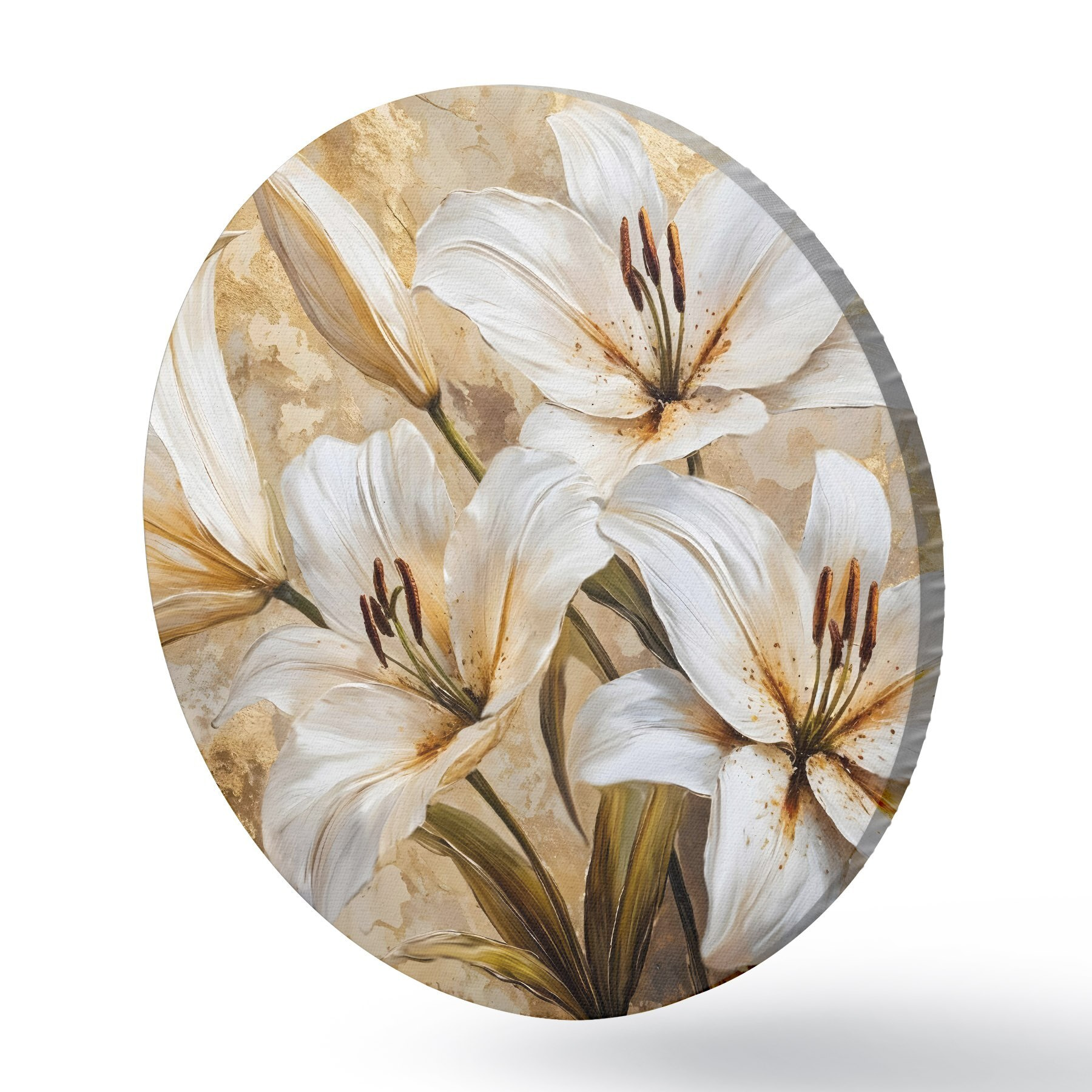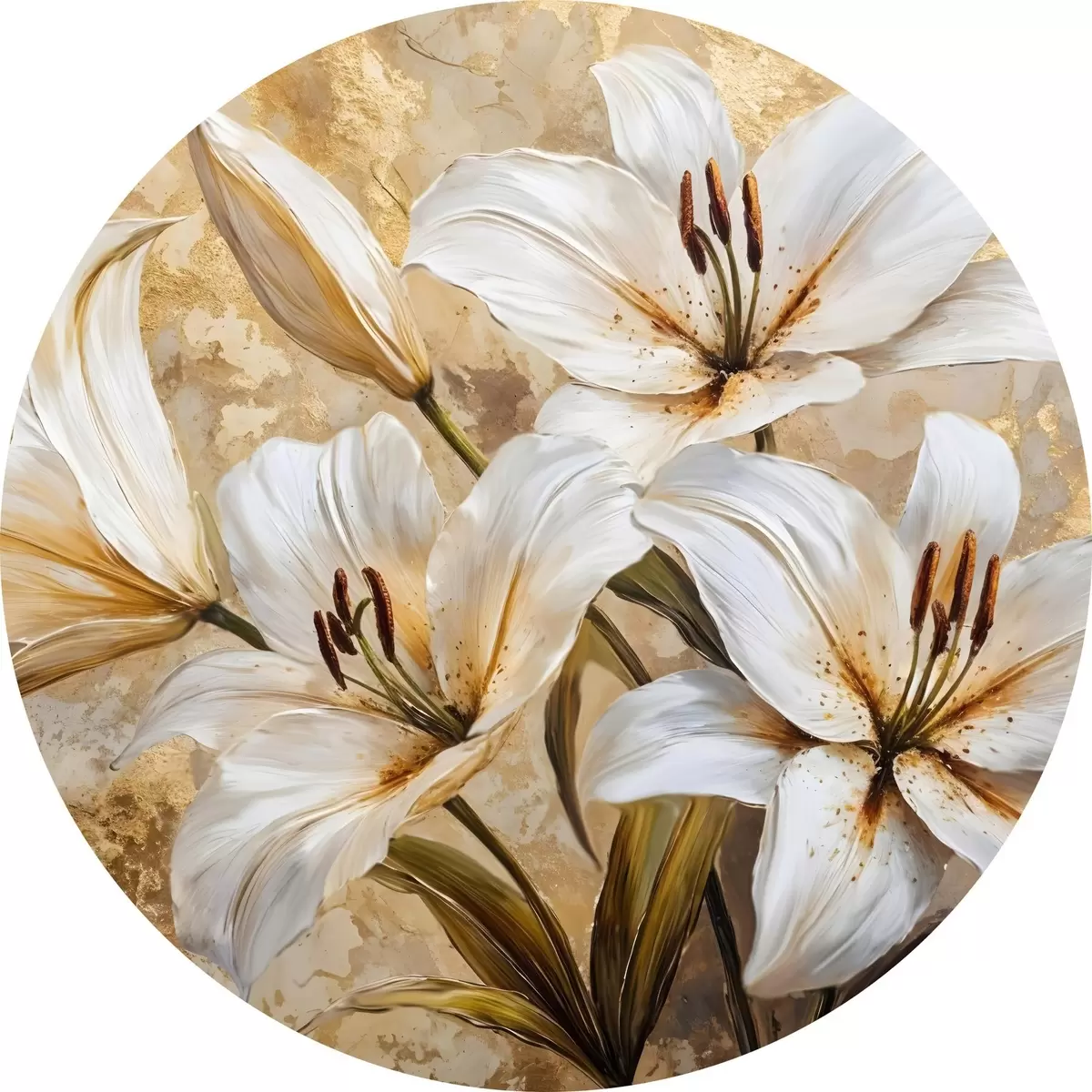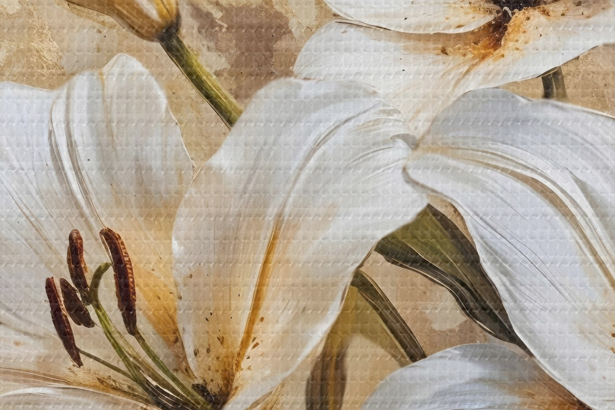 Obrázek Bílé lilie se žlutými středy na béžovém pozadí s texturou Nr r42216