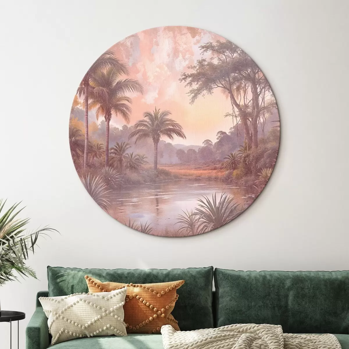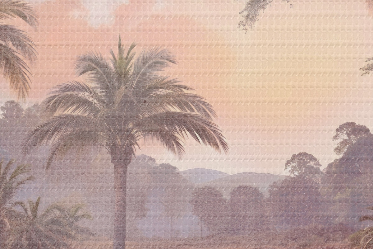 Obrázek Tropická krajina s klidným jezerem obklopeným svěžími palmami a další zelení Nr r42219