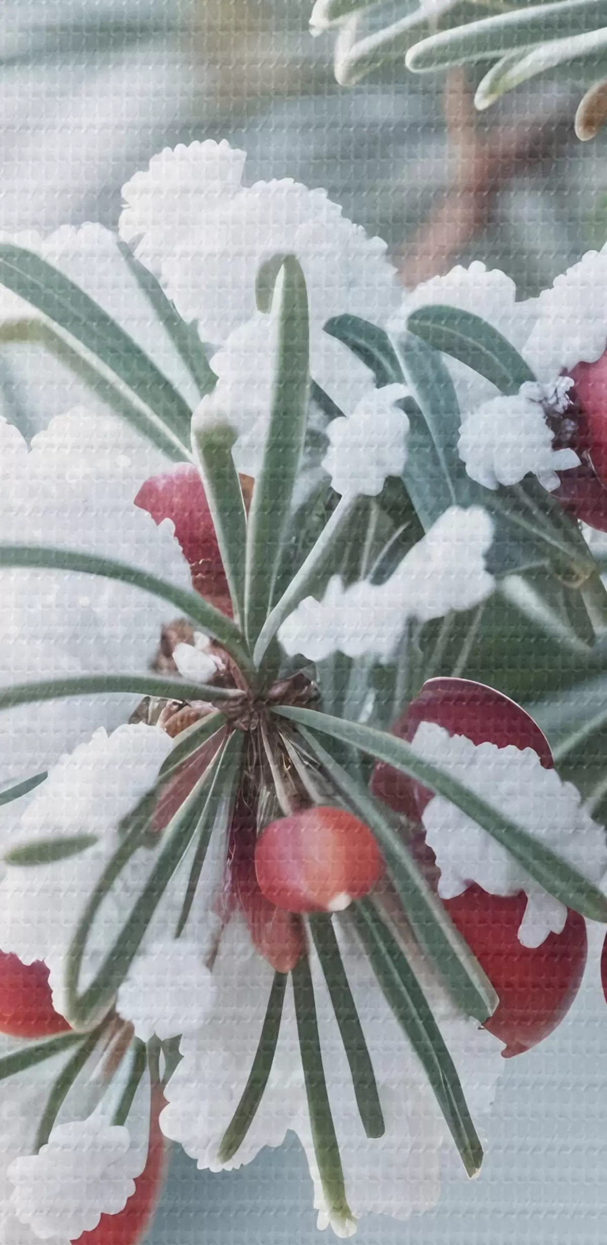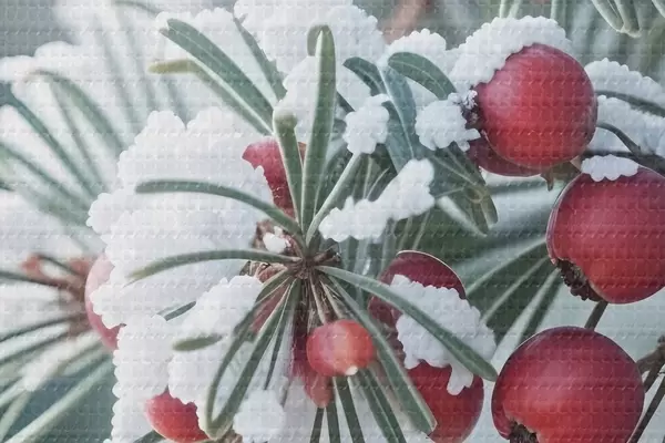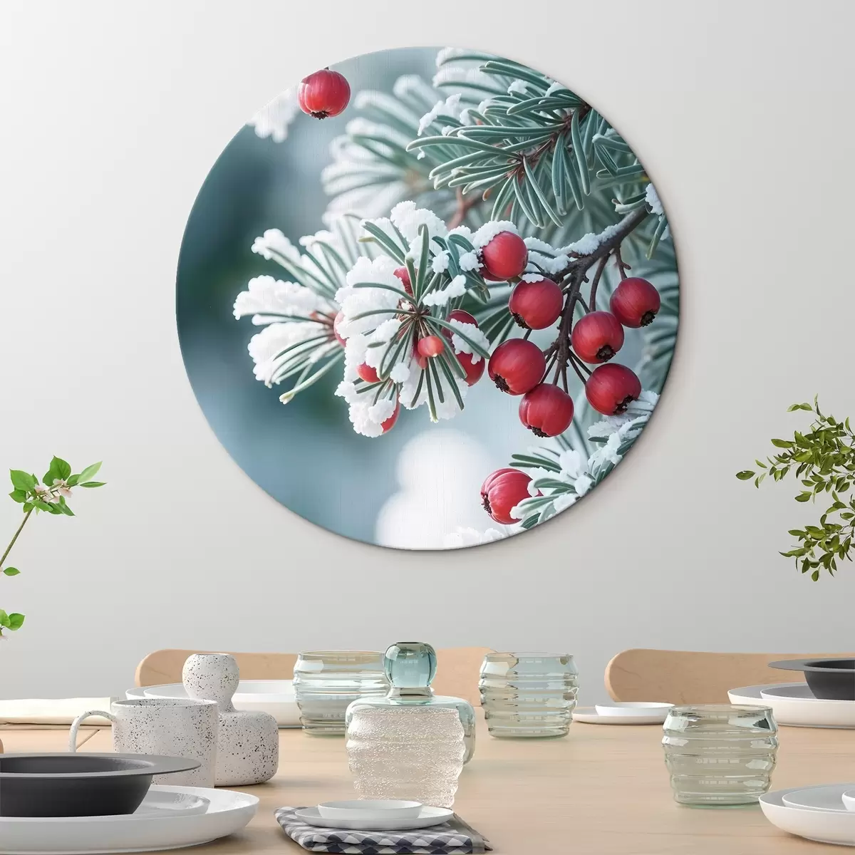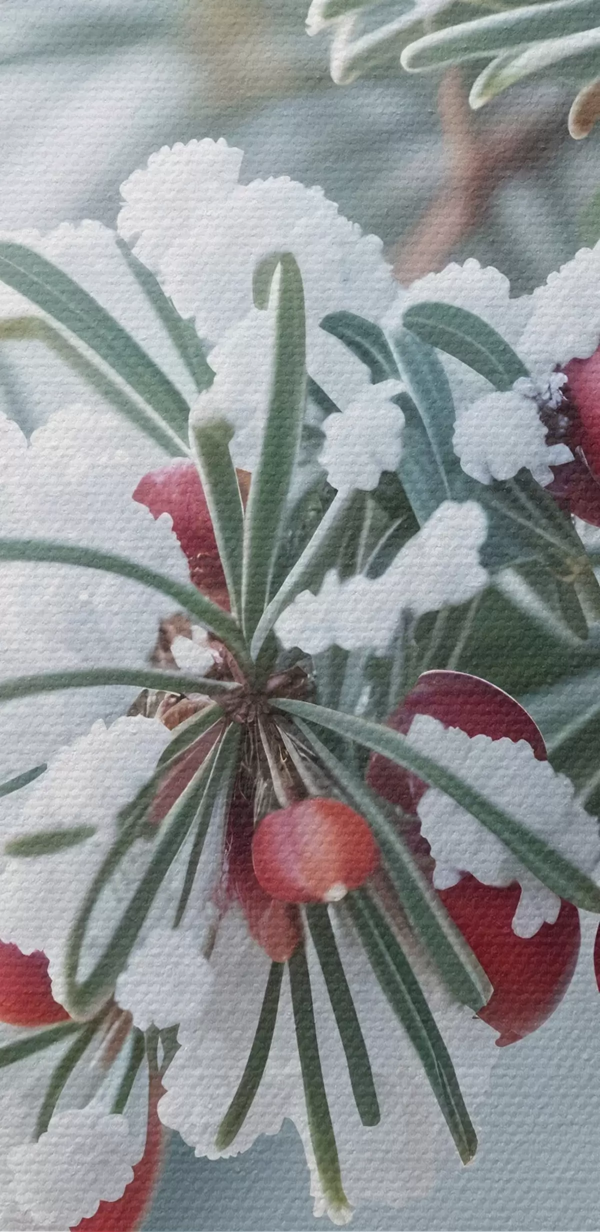 Obrázek Zasněžená větev borovice s červenými bobulemi , zimní scéna Nr r42238