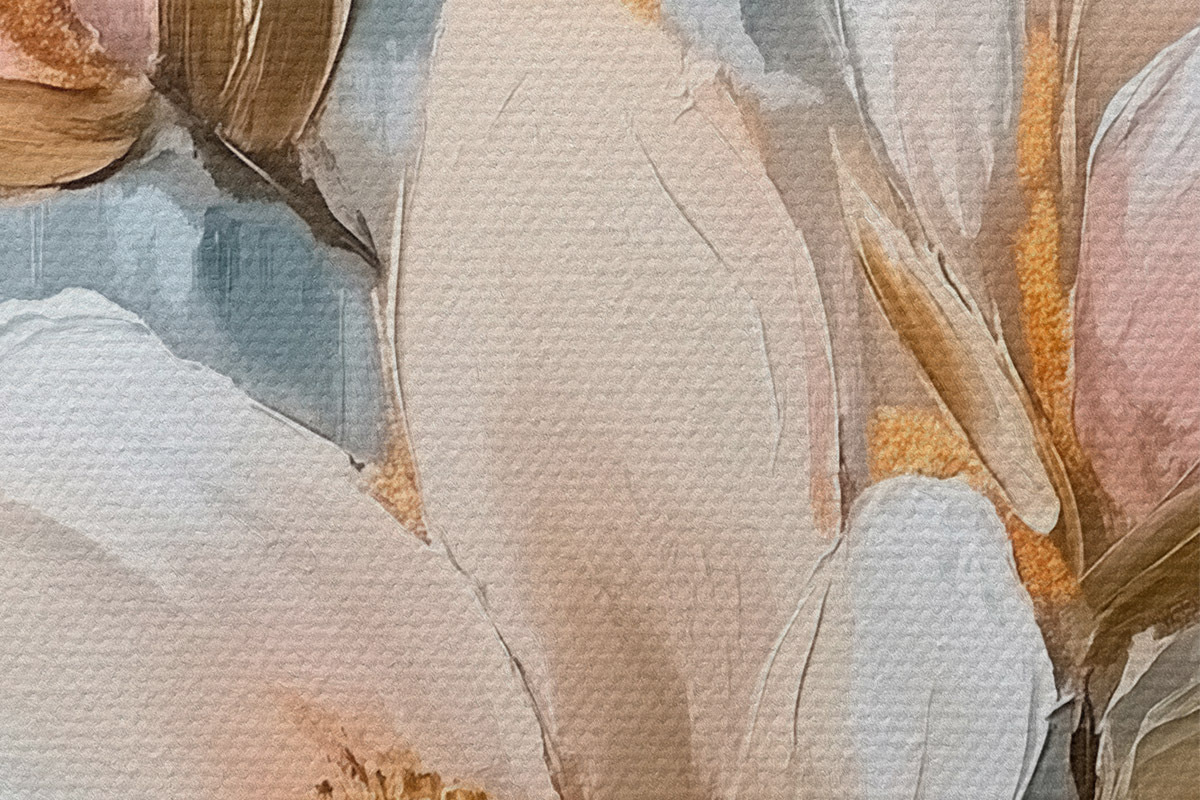 K objednání jsou k dispozici tři typy materiálu: Economic Canvas - hustý a odolný materiál pro digitální tisk, identický s malířským plátnem, voděodolný povrch, realistická reprodukce detailů, středně zrnitý materiál. Prémiové plátno - struktura připomíná malířské plátno (proplétané drobné nitě). Měkká, detailní reprodukce obrazu na matném povrchu. Eco-Premium - vysoce kvalitní tkanina ze 100% bavlny. Díky přírodním bavlněným vláknům je materiál trvanlivý a odolný proti opotřebení. Vynikající reprodukce barev a detailů.