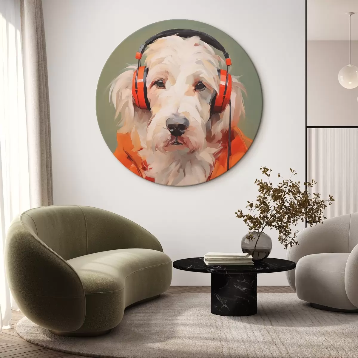 Obrázek Bílý pes s oranžovou bundou a imitací sluchátek Nr r42364