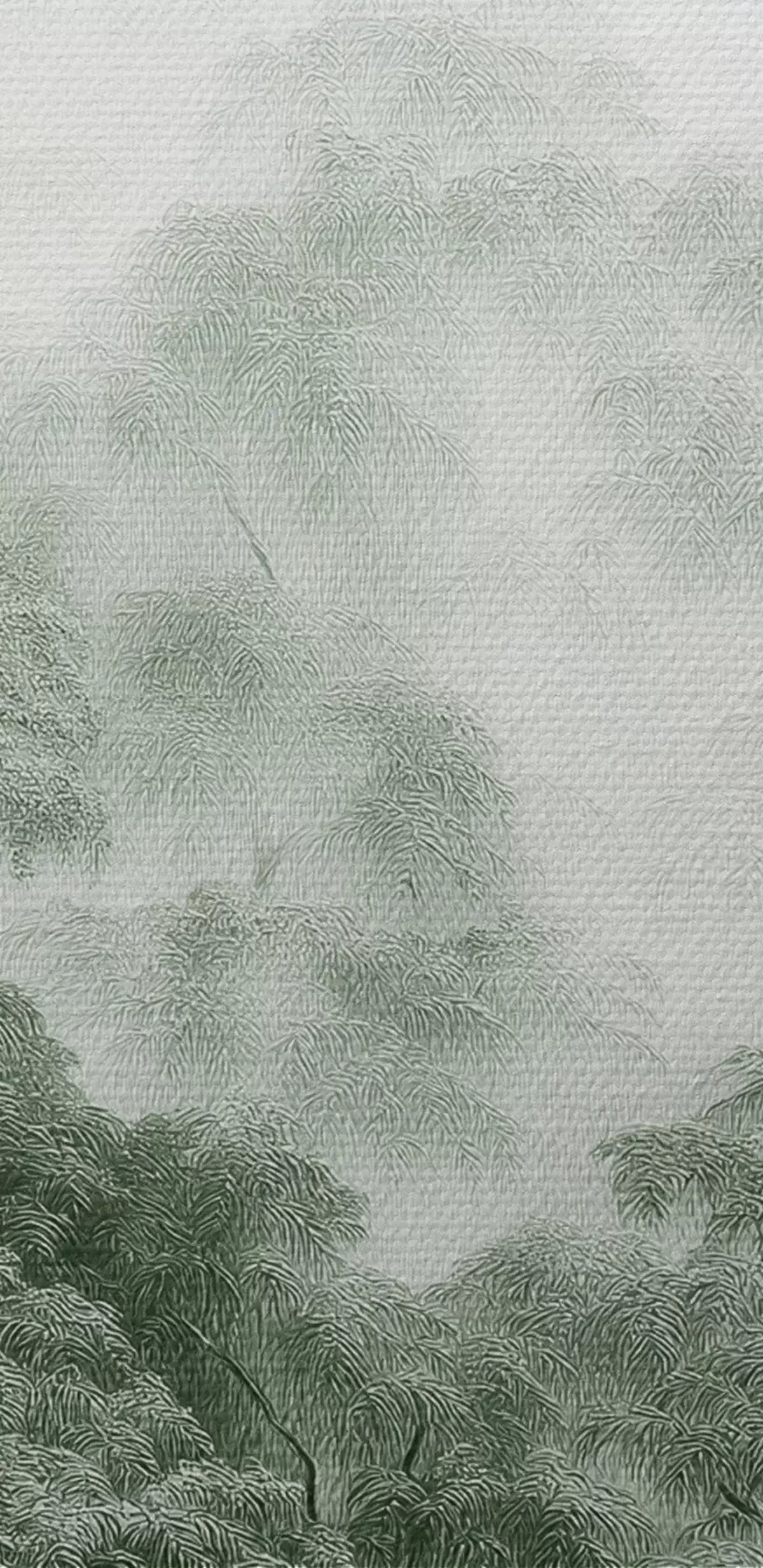 Obrázek Tropický les v mlze, palmy, zelené barvy Nr r42371