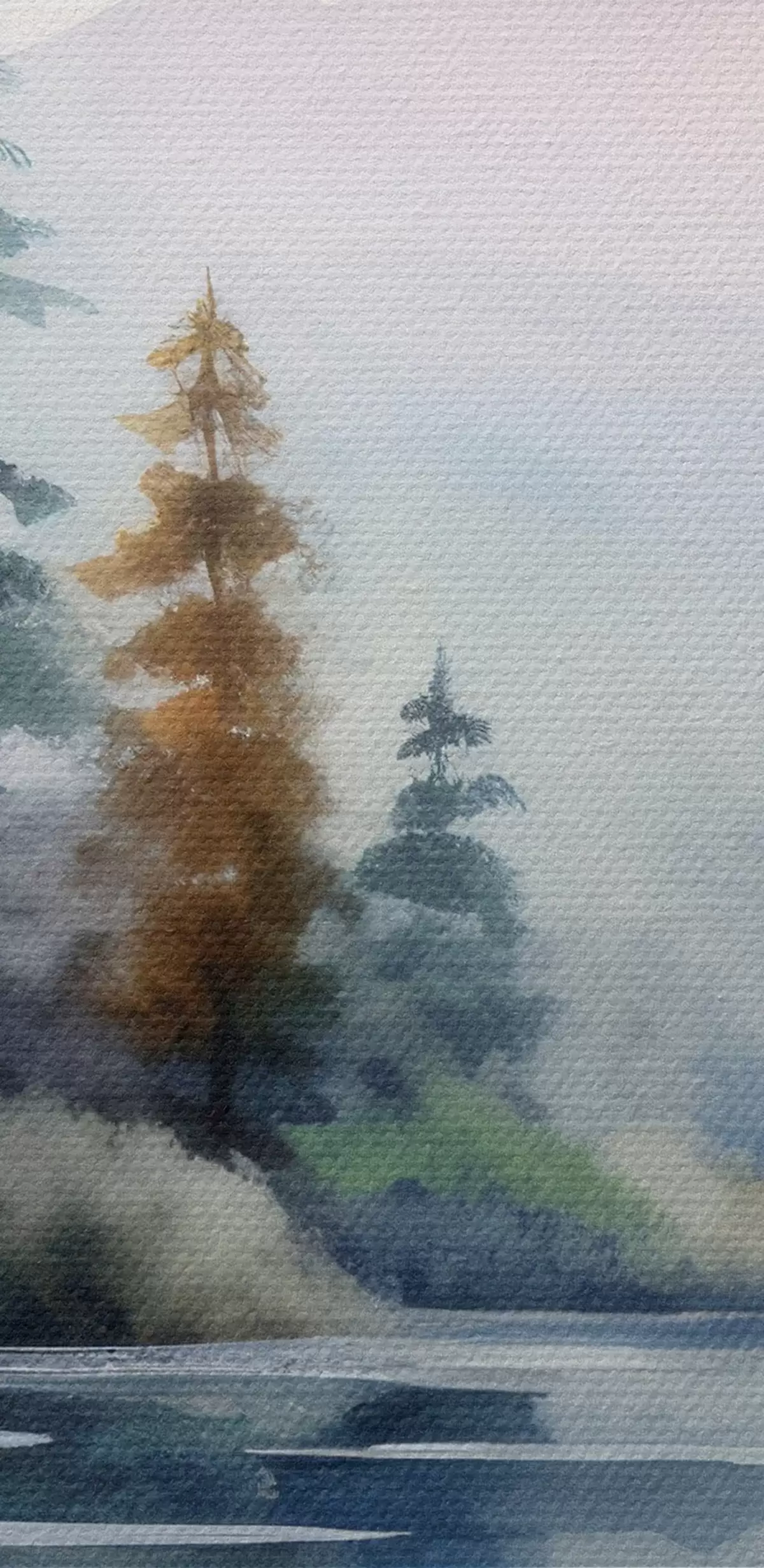 Obrázek Les v mlze na pozadí jezera Nr r42384