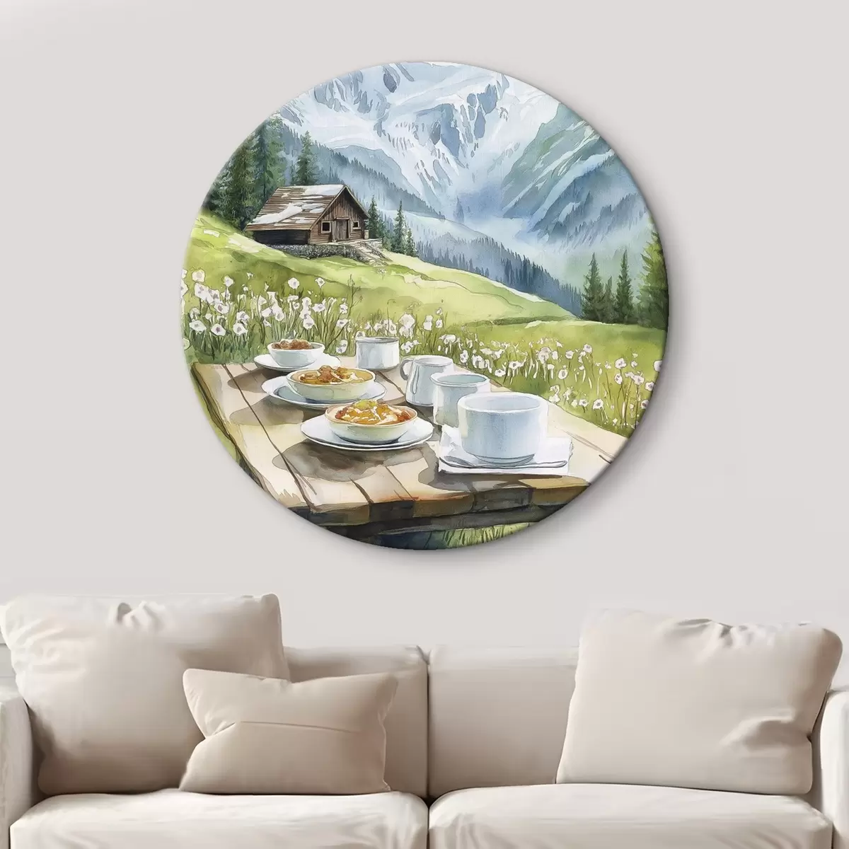 Obrázek Snídaně v Alpách, hory, les, příroda, léto, akvarel Nr r42426