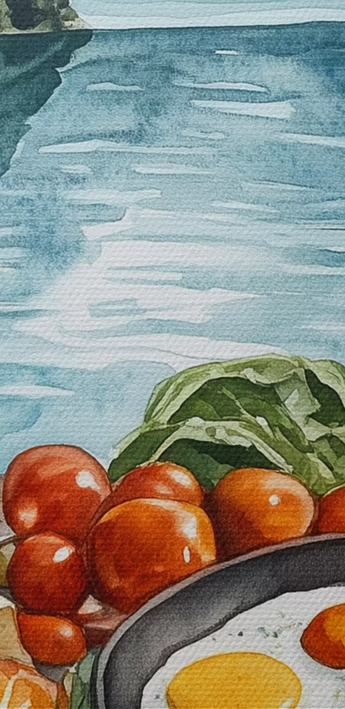 Obrázek Cestování, přírodní krajiny, akvarel, Norsko, snídaně, dodávka Nr r42431