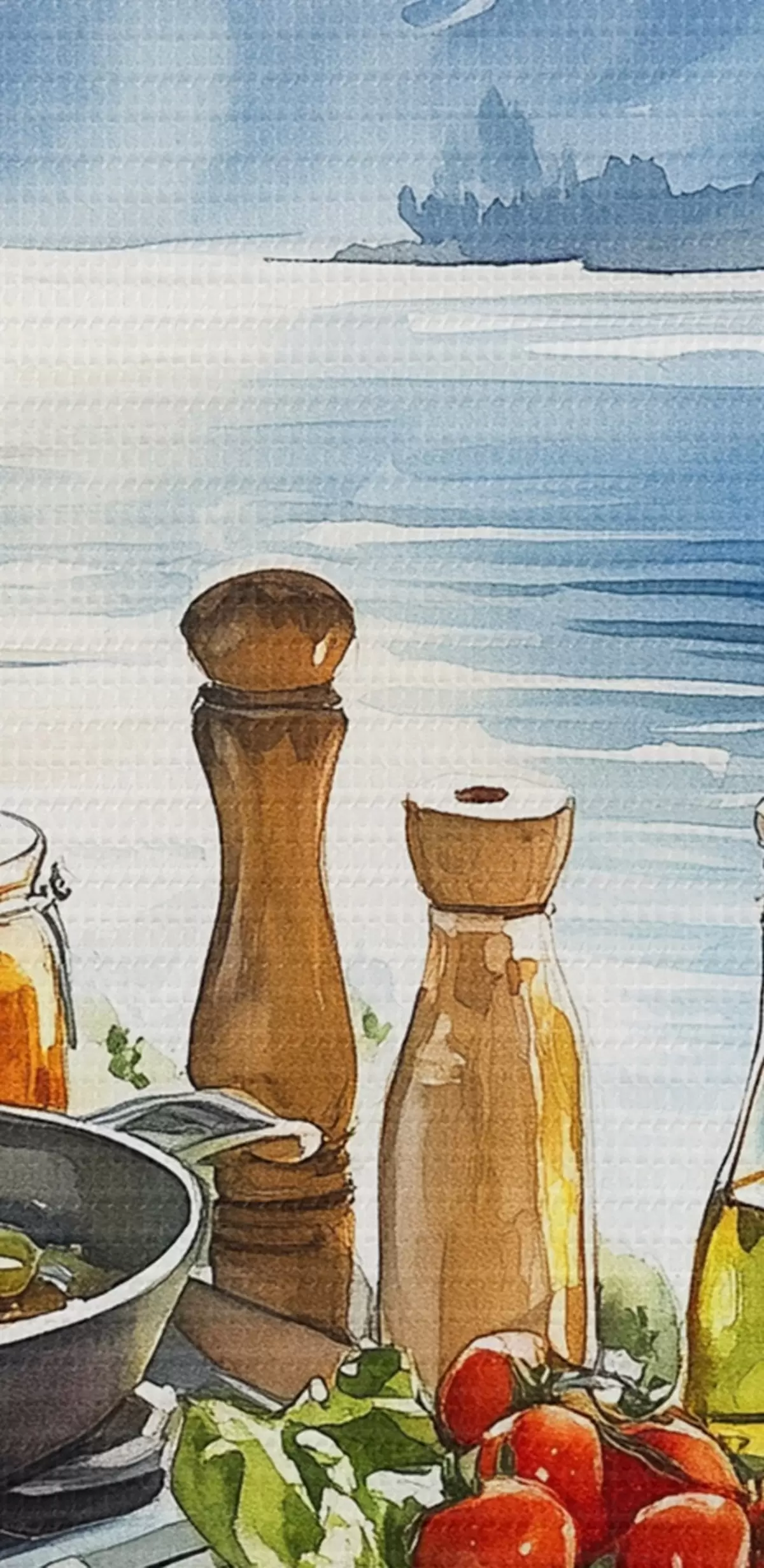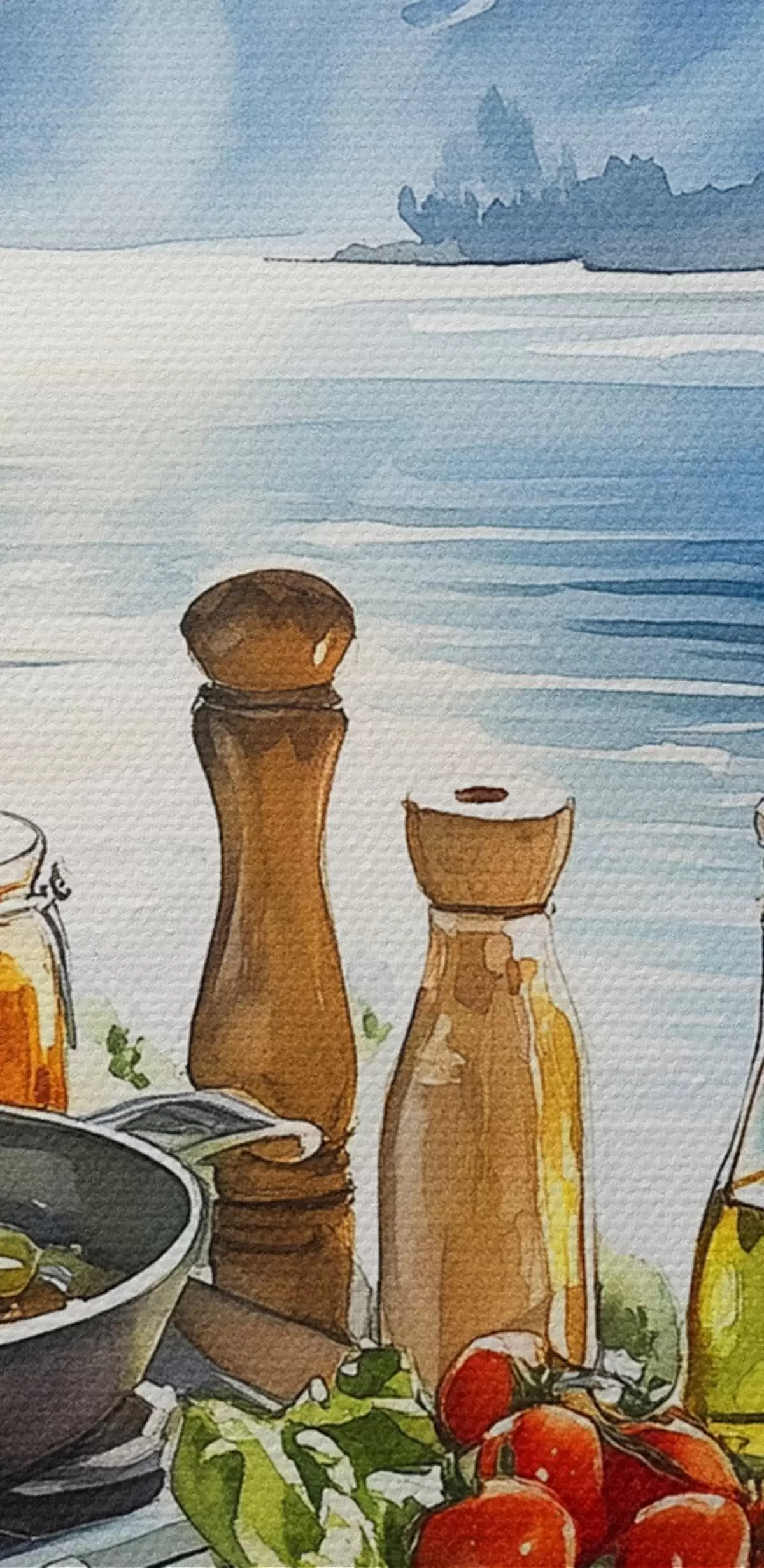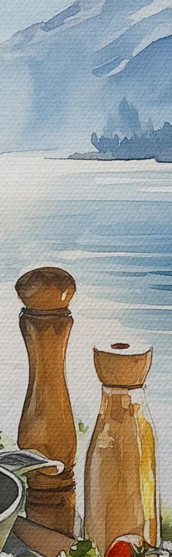 Obrázek Krásné letní ráno, jezero, akvarel, snídaně, cestování Nr r42433