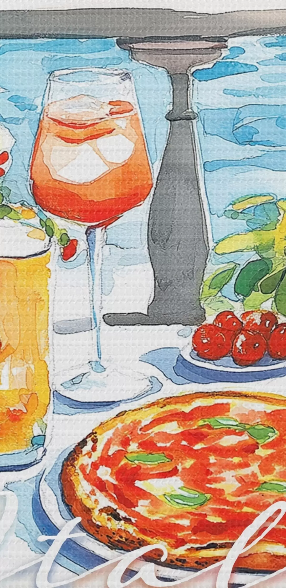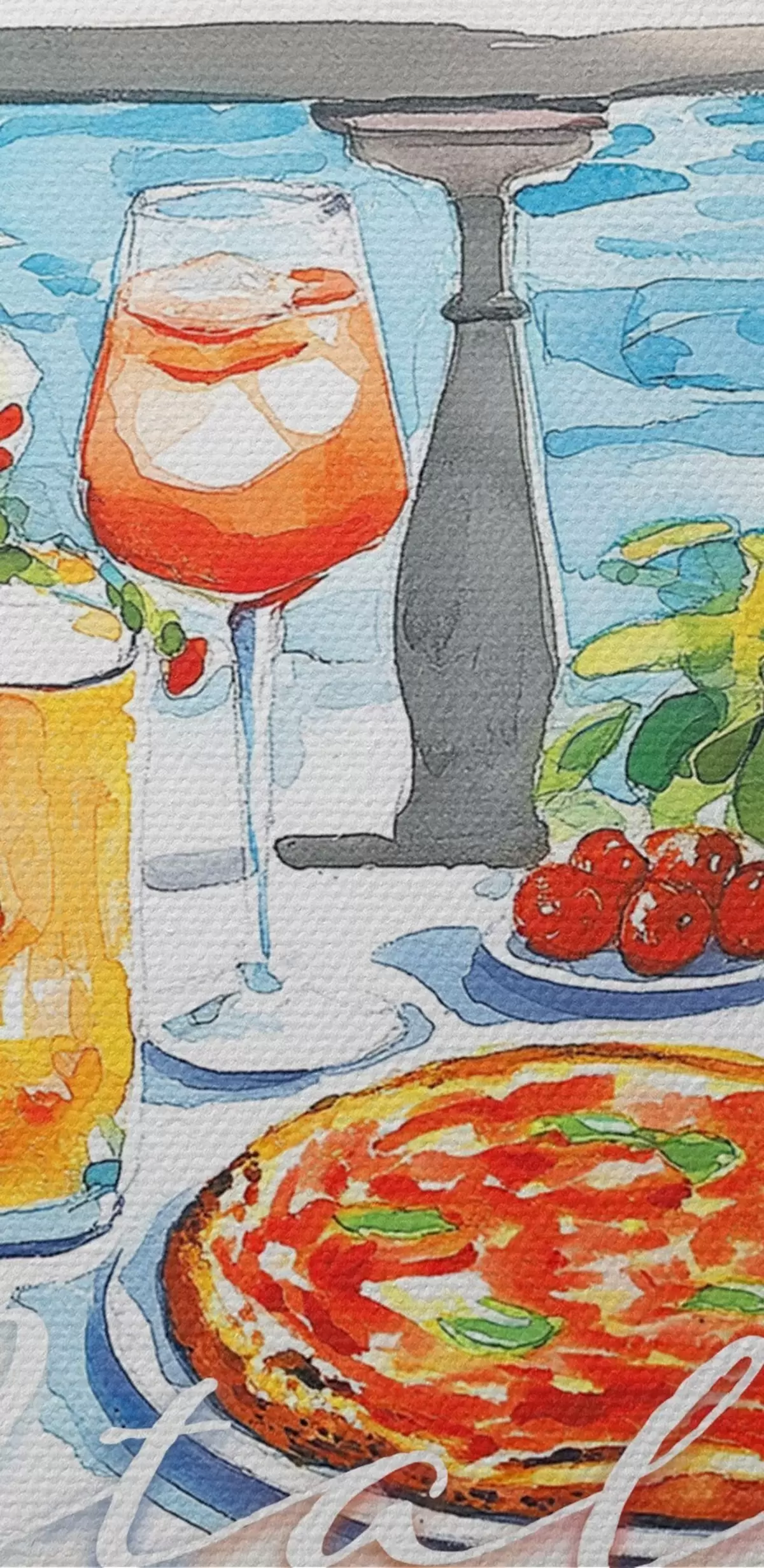 Obrázek Estetika Itálie, akvarelový styl, pizza a koktejly, hory Nr r42434