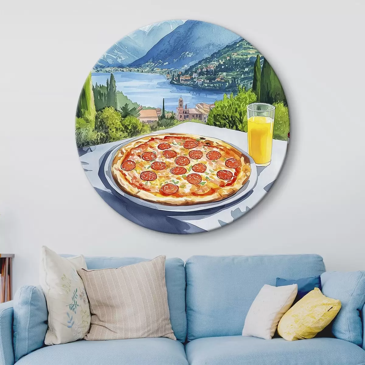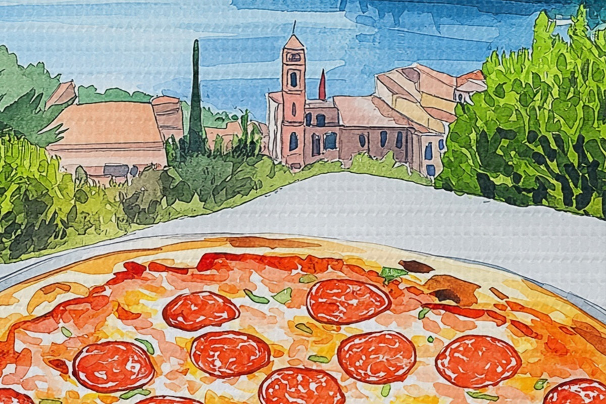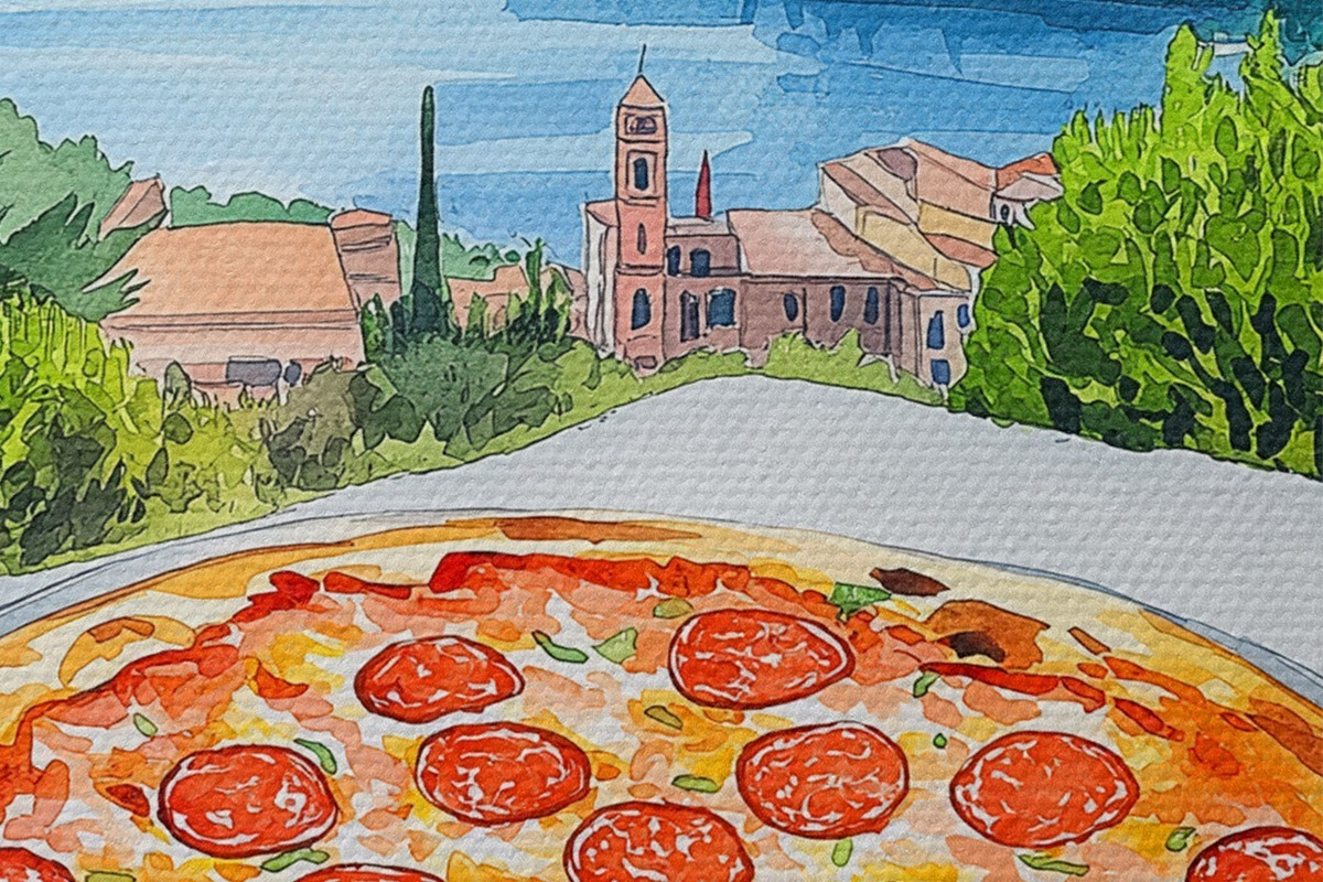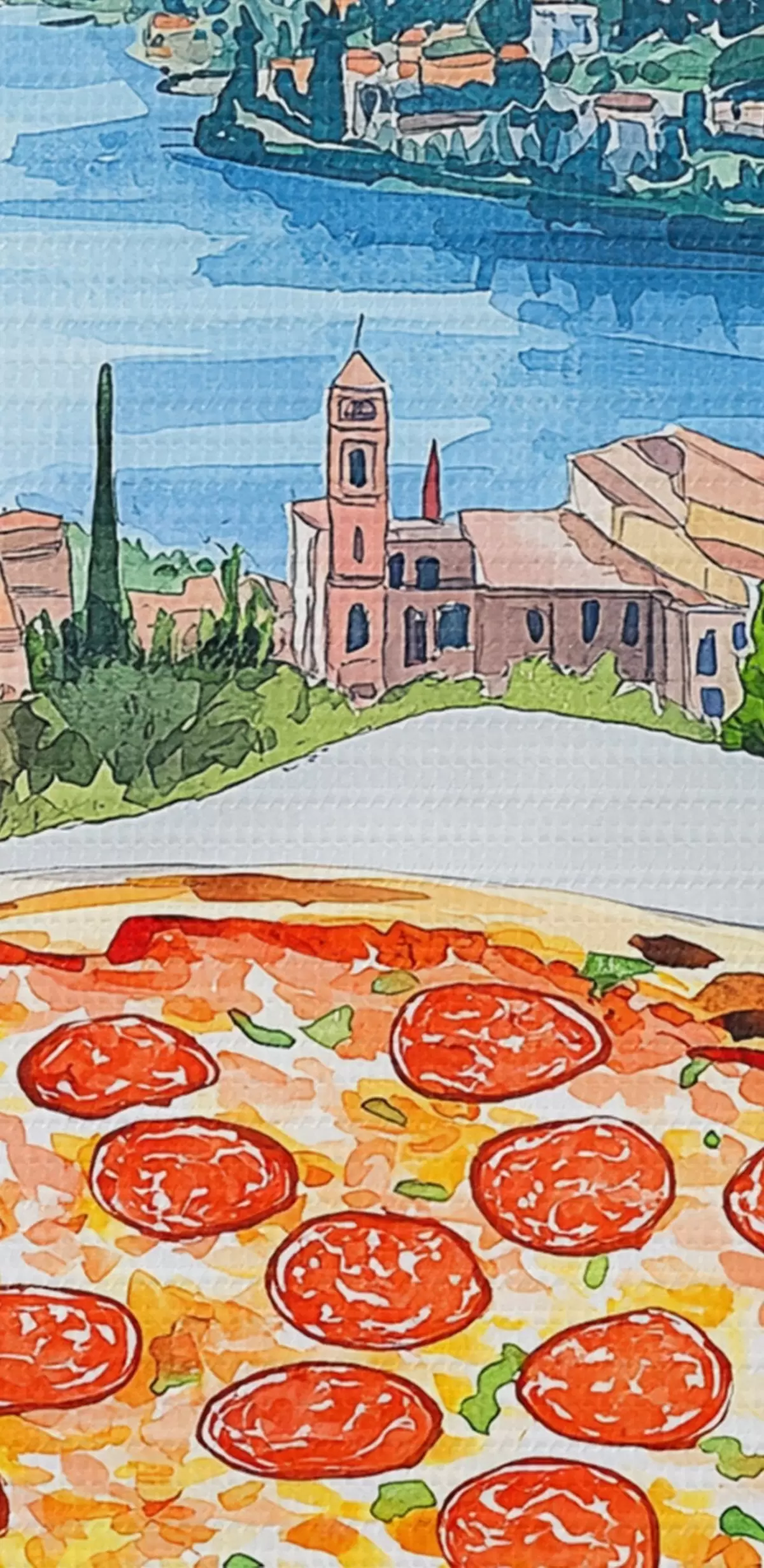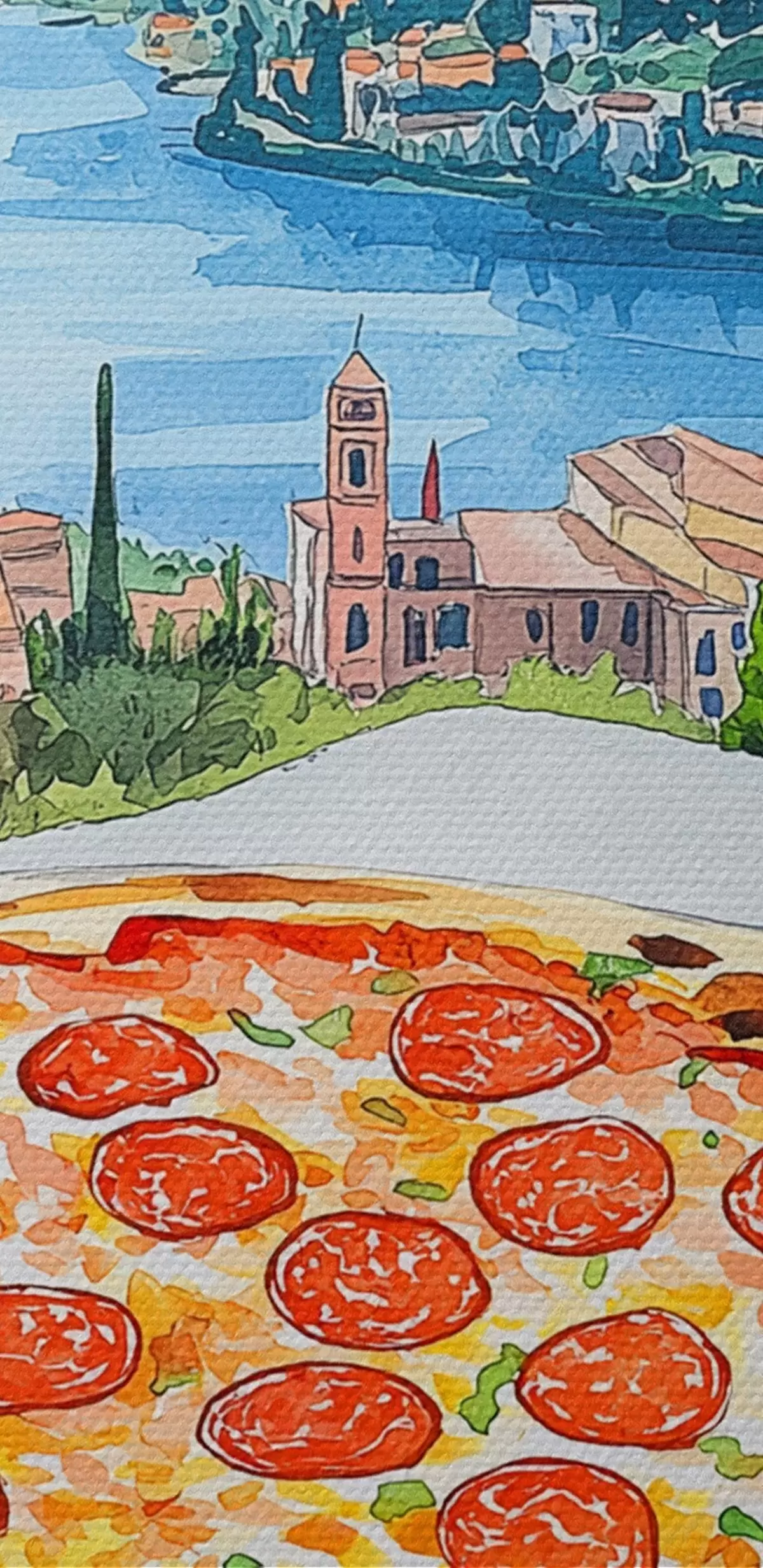 Obrázek Akvarel, Itálie, pizza, staré město, horská krajina Nr r42435