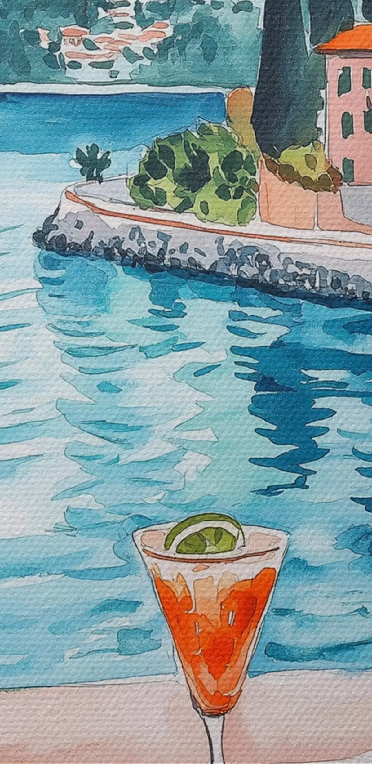 Obrázek Jezero Como, Itálie, akvarel, pizza, koktejly, staré město, hory Nr r42437