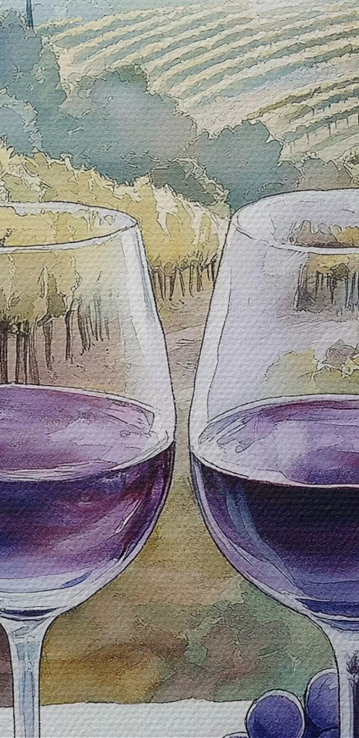 Obrázek Akvarel ve stylu Toskánsko, vinařské dvory, hrozny Nr r42440