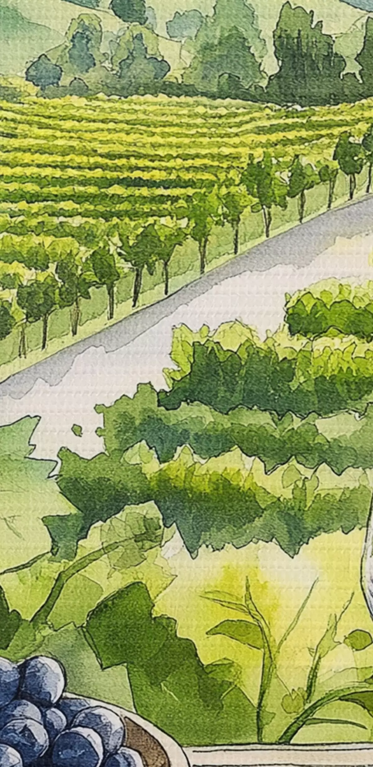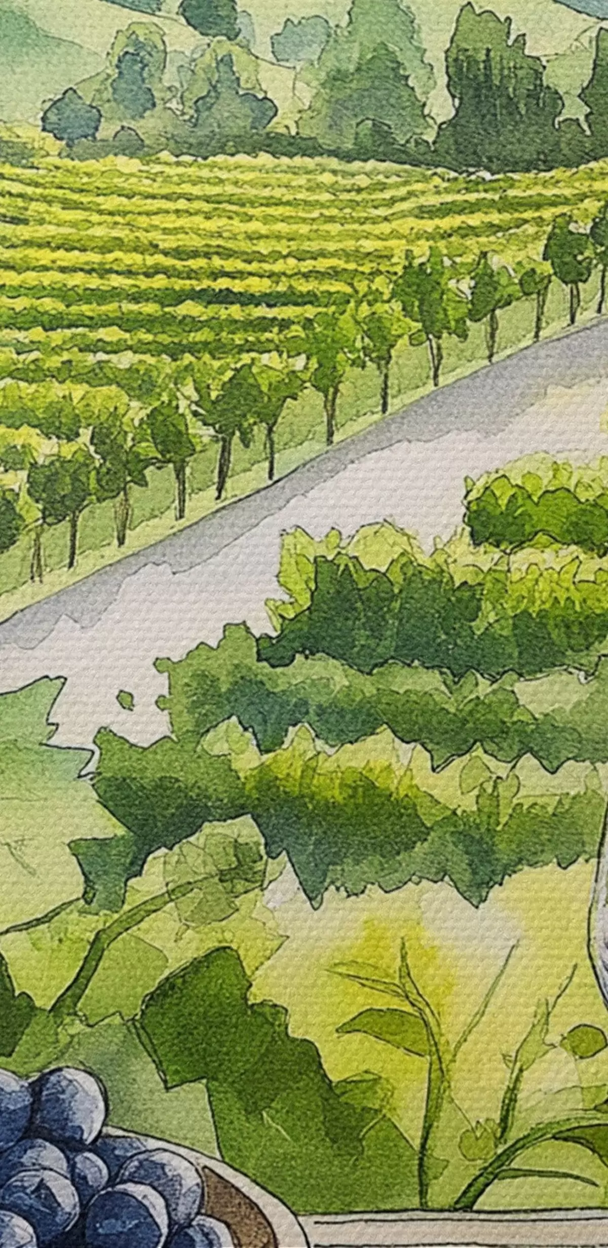 Obrázek Gpape dvorky, akvarelový styl krajiny, sklenice na víno Nr r42444