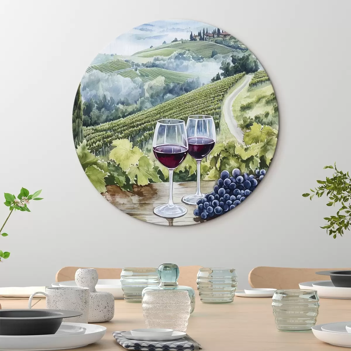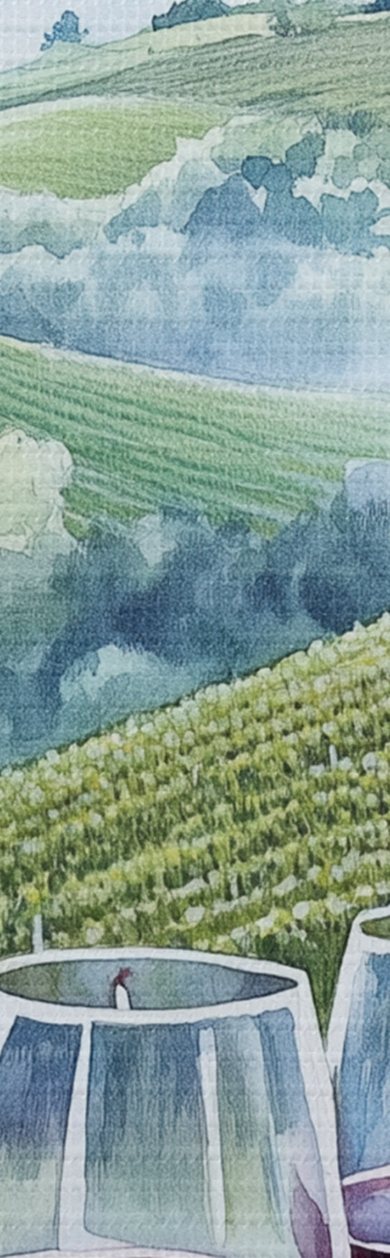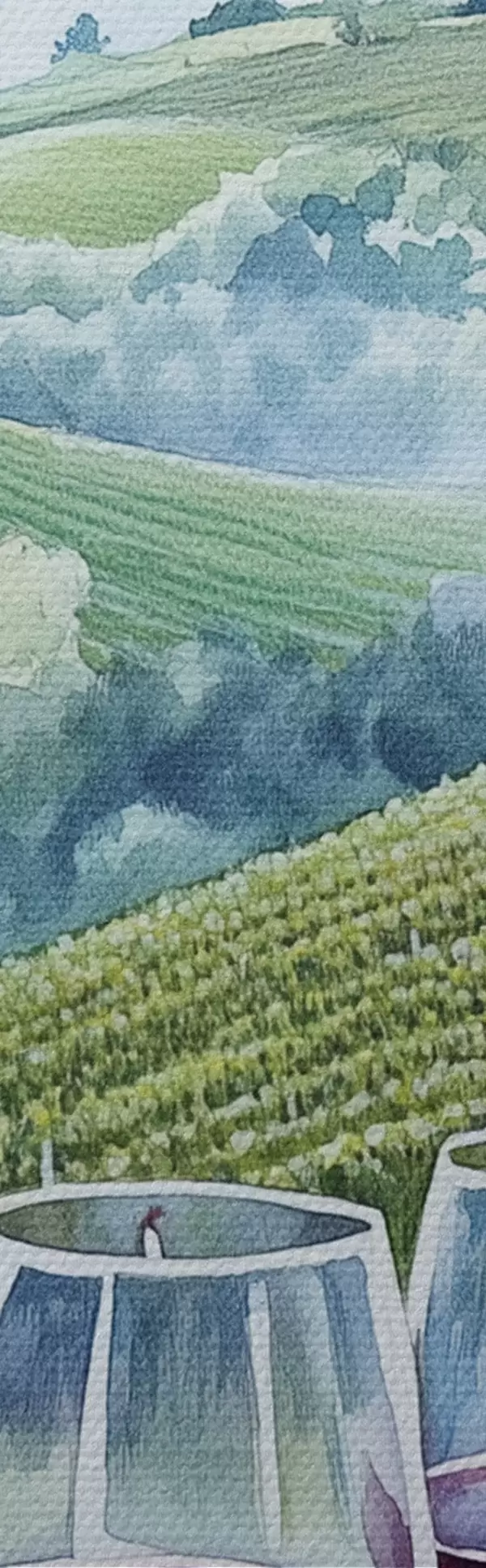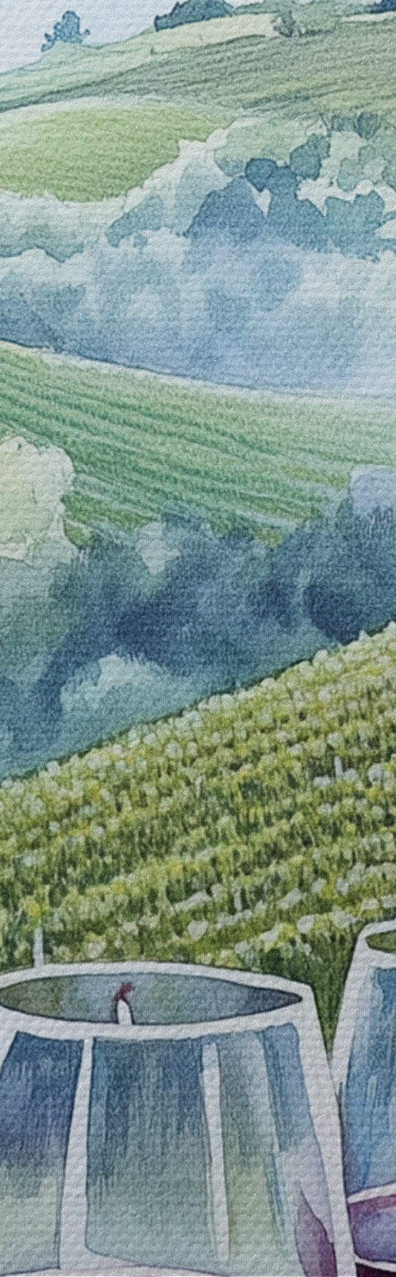 Obrázek Toskánská krajina, vinné sklípky, sklenice na víno, akvarel Nr r42445