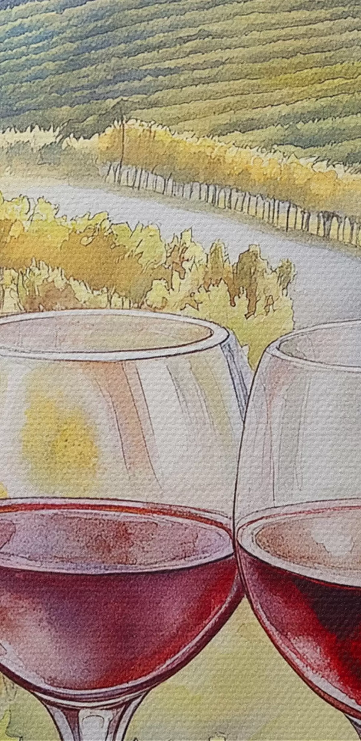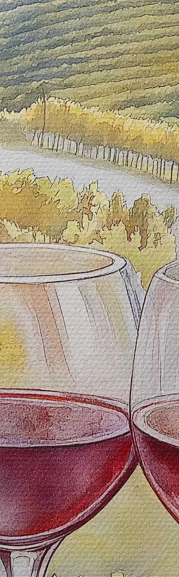 Obrázek Západ slunce v Toskánsku, vinařství, stará architektura, akvarel, Itálie Nr r42446
