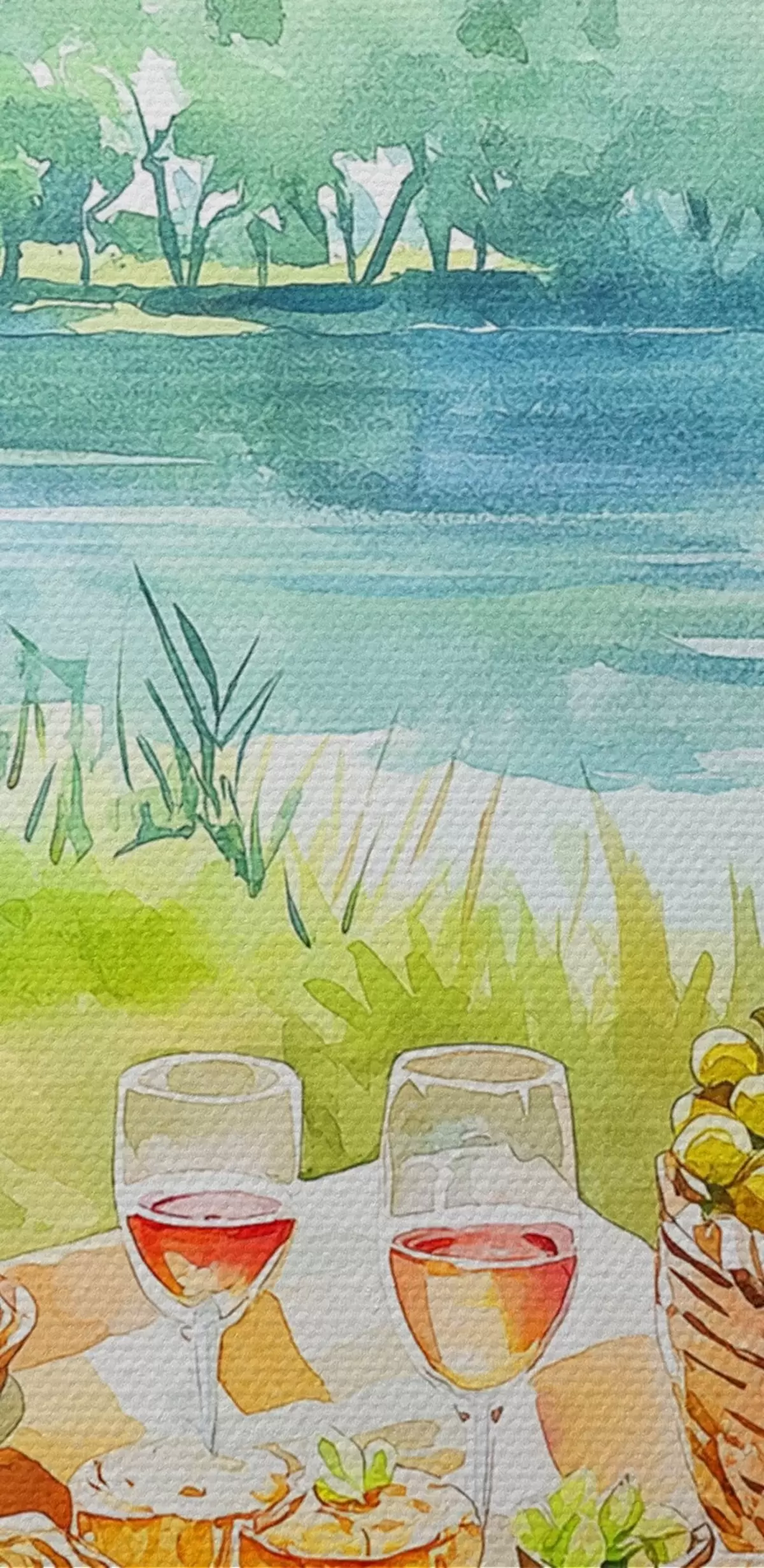 Obrázek Estetika pikniku, letní příroda, jezero, romantika, akvarel Nr r42450
