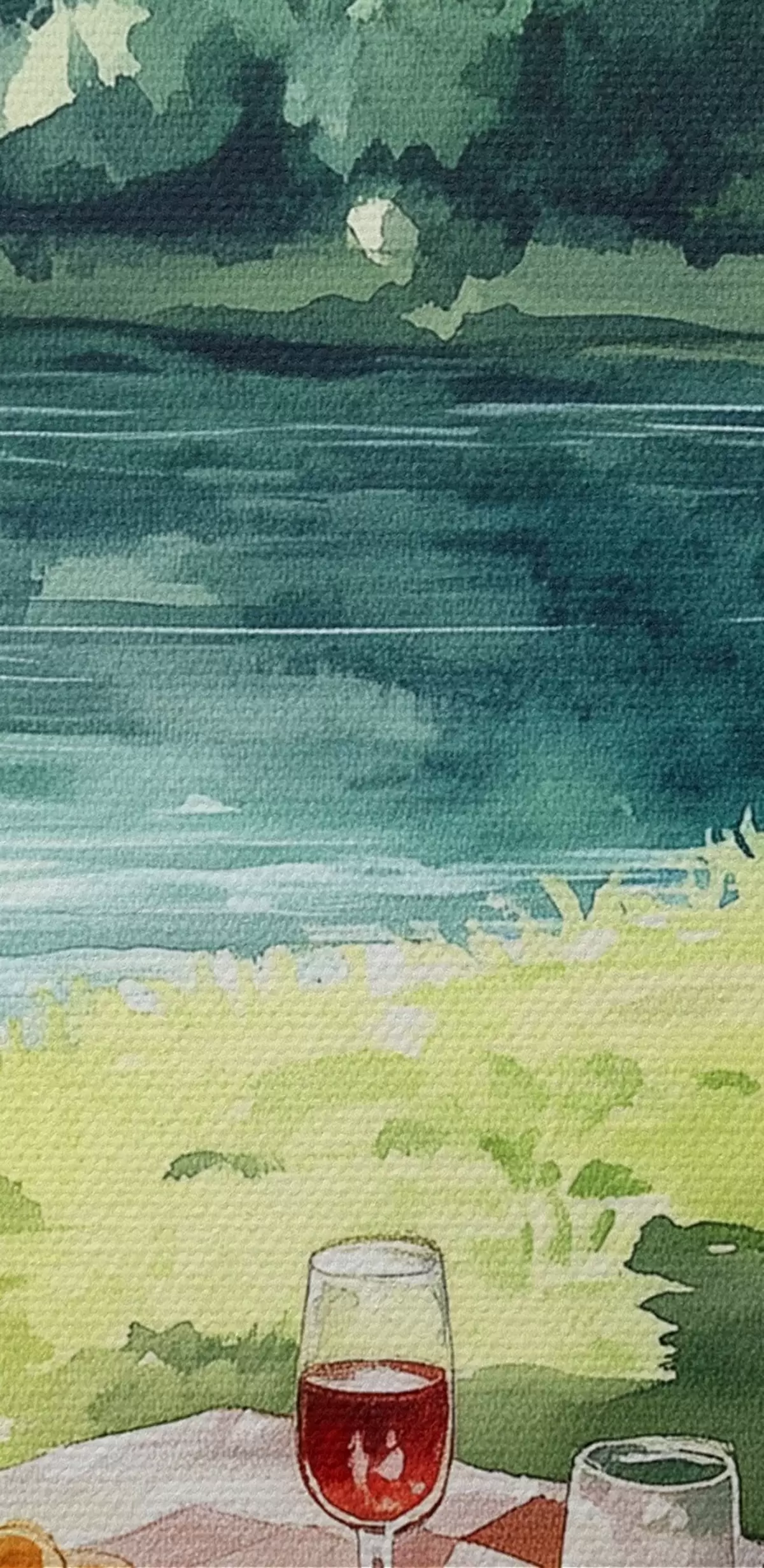 Obrázek Krásný romantický piknik u letního jezera, ovoce, zeleň Nr r42451
